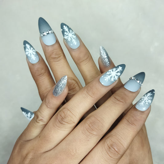 Christmas Collection : Matte Grey Ombre Snowflakes Press on Nails Set