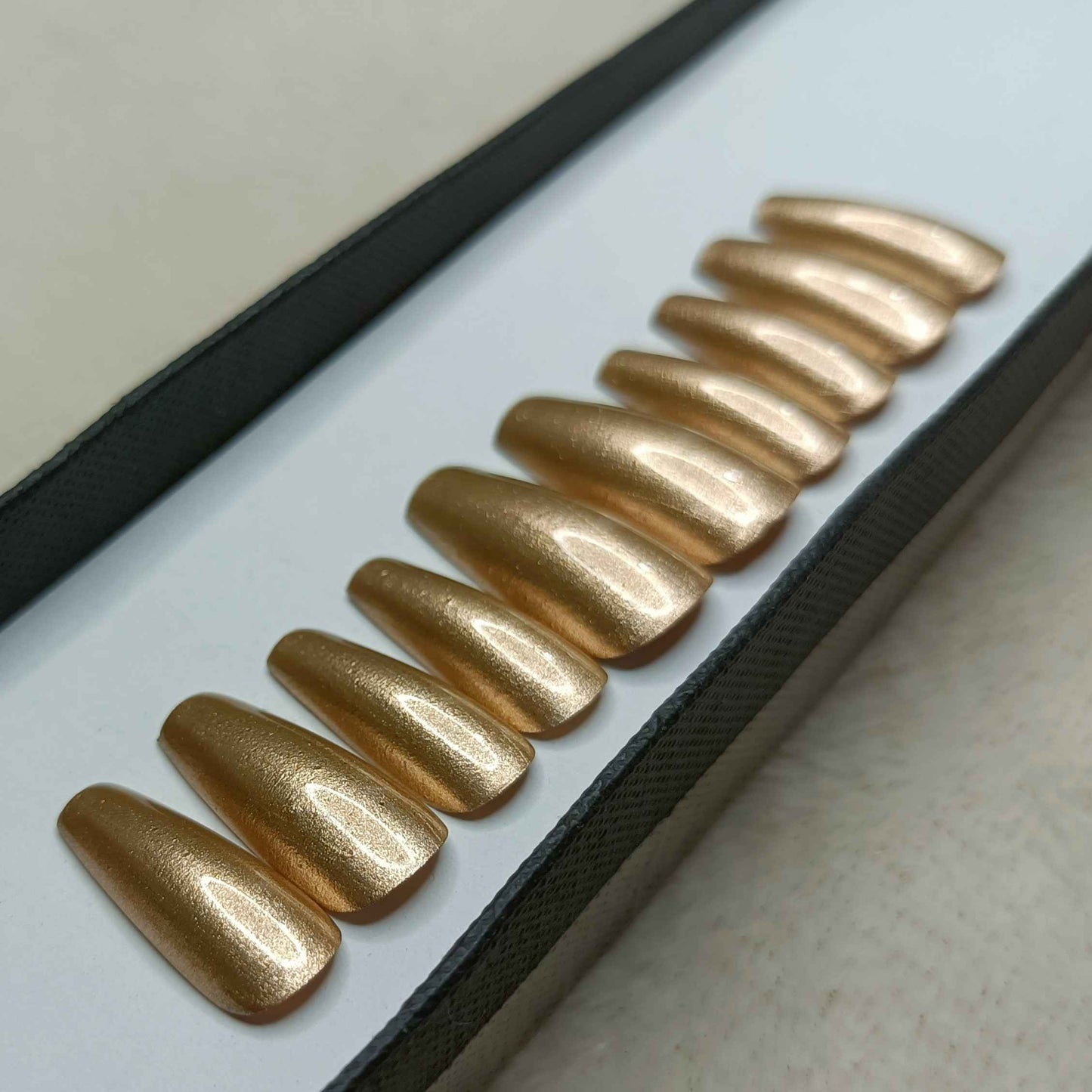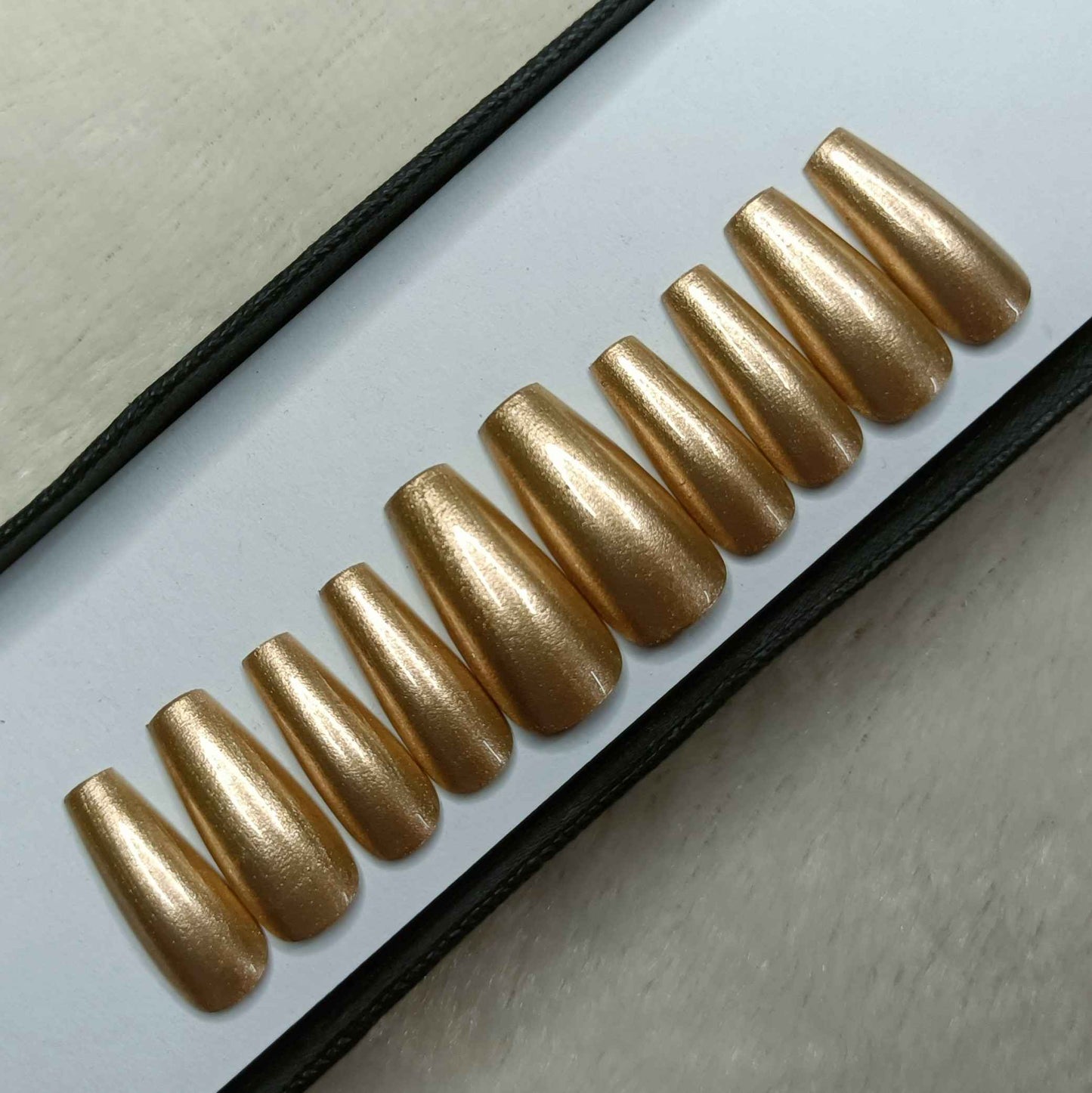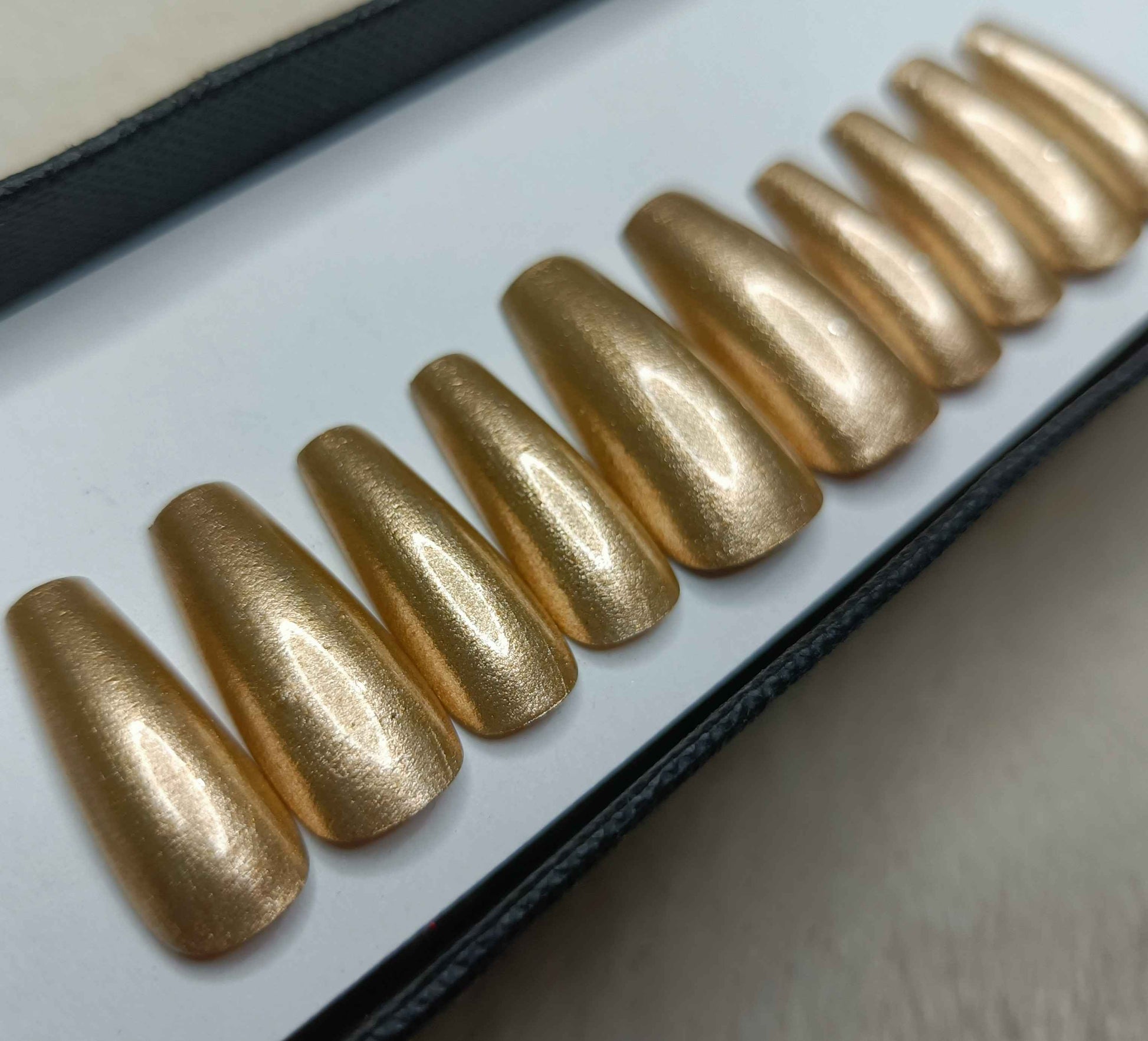 The NailzStation Gold Chrome Press on Fake Artificial Nails Set with glue, filer, sticker application kit