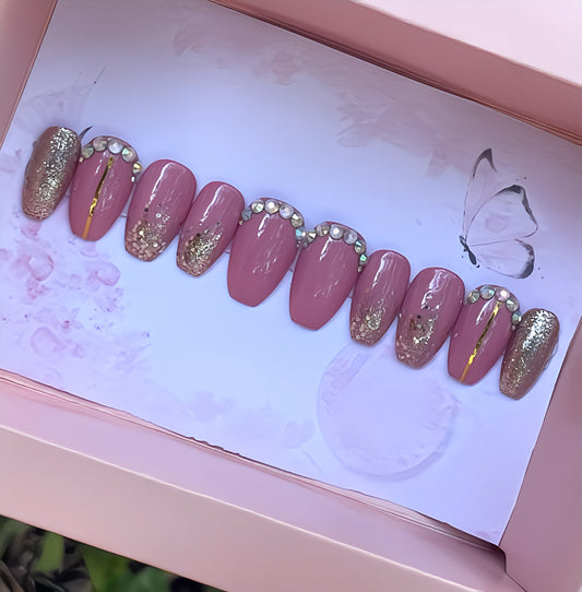 Glossy Light Pink Glitter Printed Press on Nails Set //169