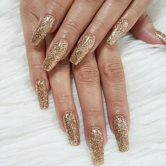 Pair of Full Glitter (Golden) Replacement Press on Nails (2 pieces)