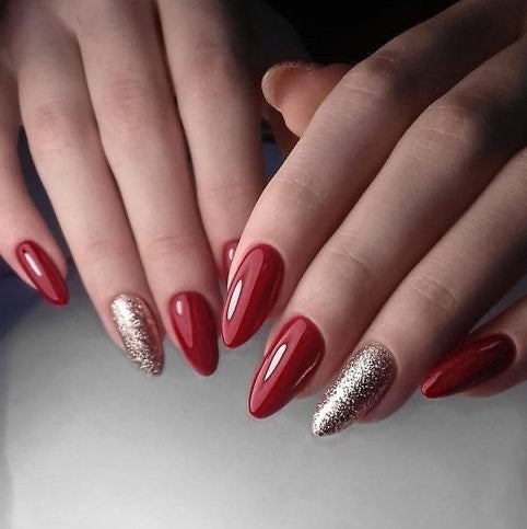 Glossy Red Glitter Press on Fake Nails // tns453