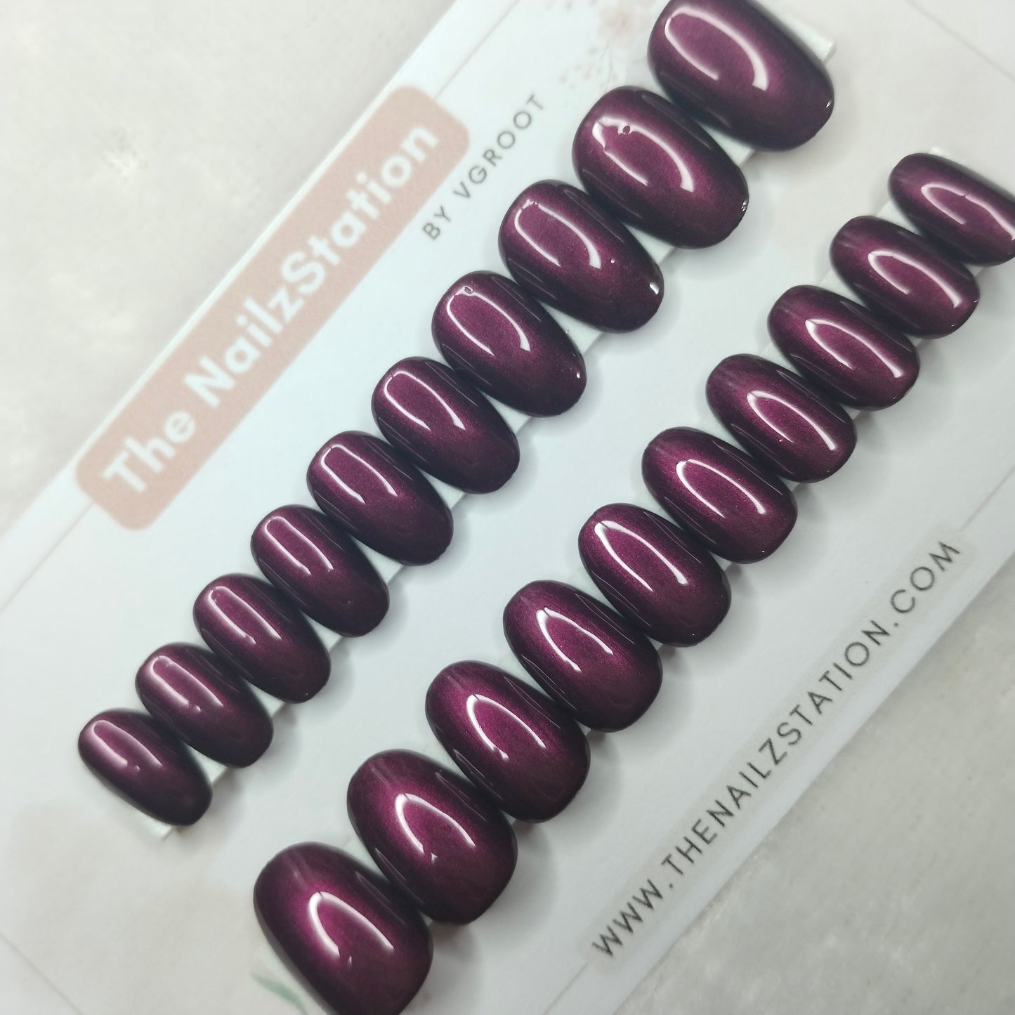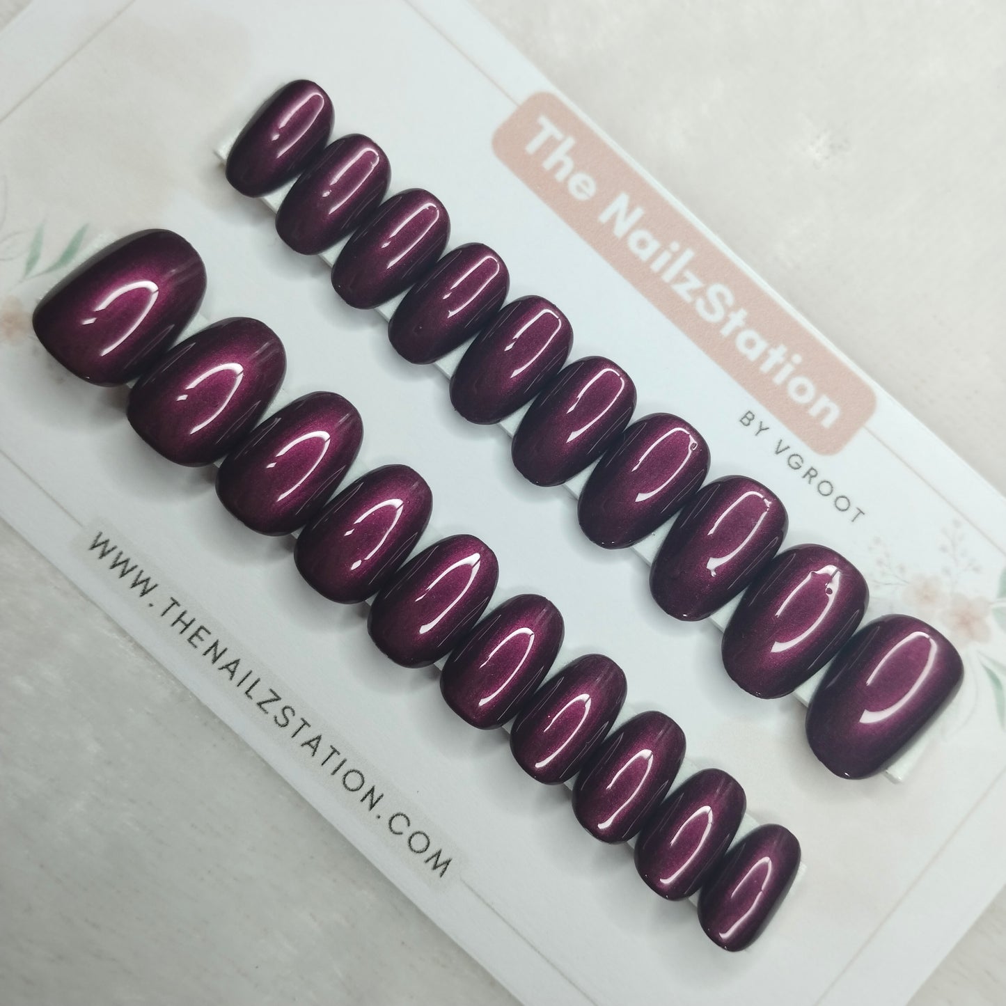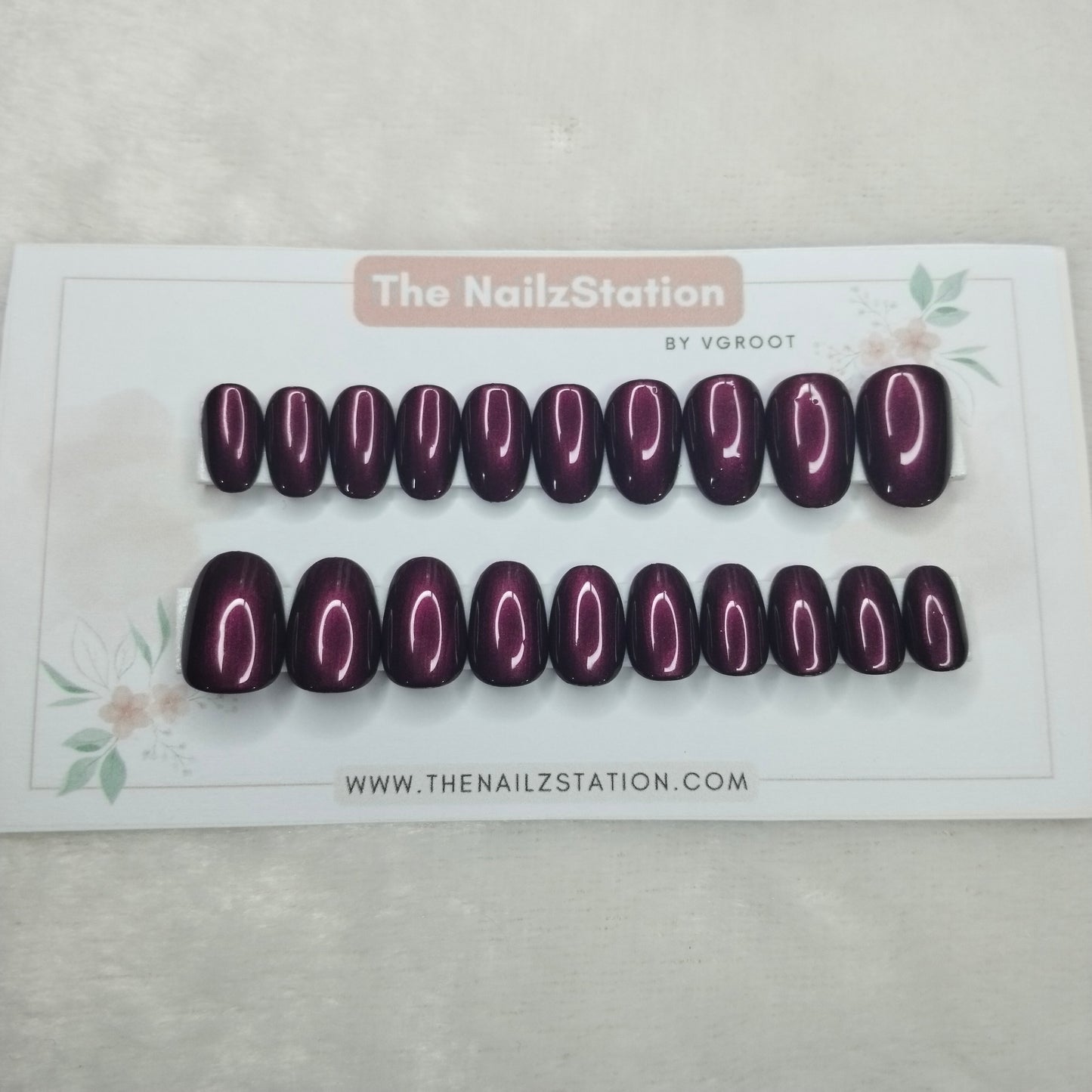 The NailzStation Wine Shine Chrome Press on Fake Artificial Nails Set with glue, filer, sticker application kit SB-SY-53
