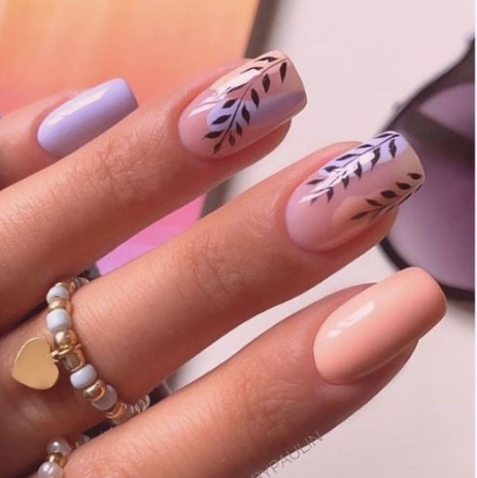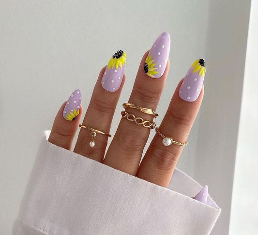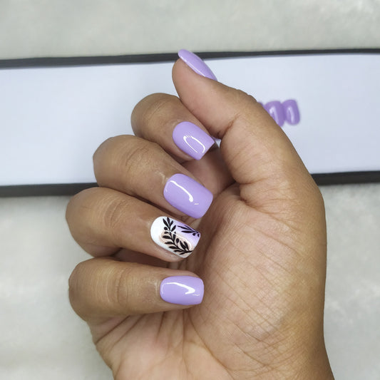 Glossy Lavender Floral Printed Press on Nails Set // 544