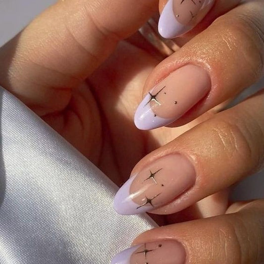 Glossy Purple French Stars Press on Fake Artificial Nails / tns791