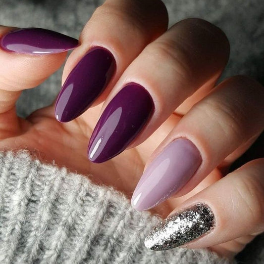 Glossy Dark Purple Glitter Ombre Press on Nails Set // 634