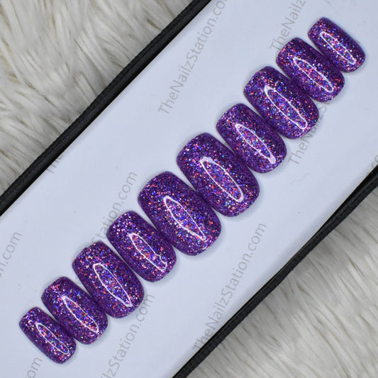 Glossy Purple Holographic Glitter Press on Nails Set // 520