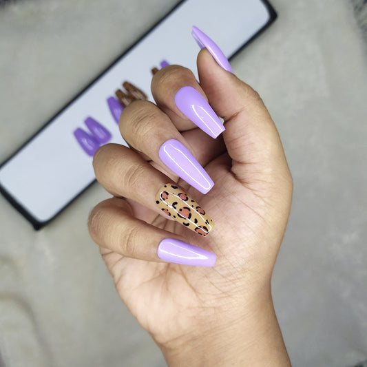 Glossy Light purple Animal Print Press on Nails Set // 410