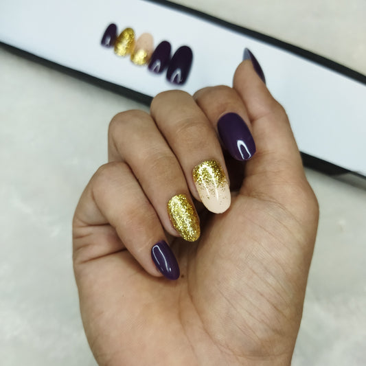Dark Purple with Glitter Ombre press on nails Set // 332