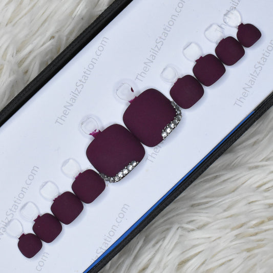Matte Plum with Rhinestones Accent Press on Toe Nails Set // 210
