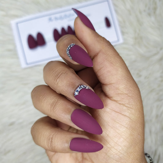 Matte Plum with Rhinestones Accent Press on Nails Set // 210