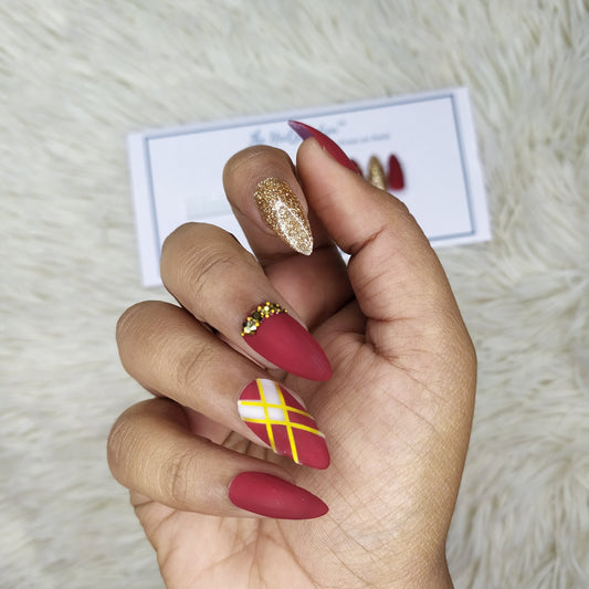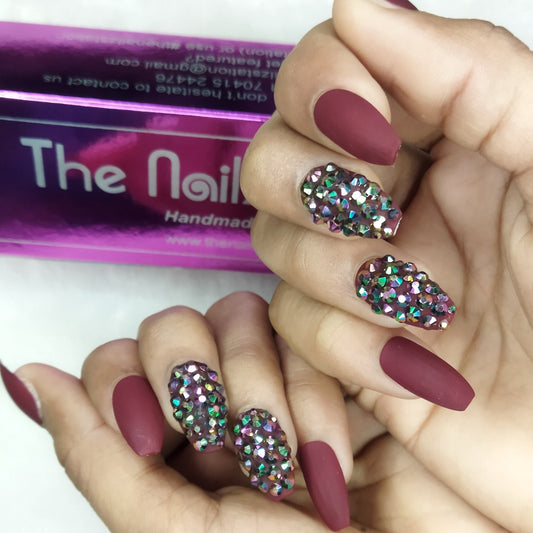 Matte Maroon Glitter Studded Press on Fake Nails // tns133