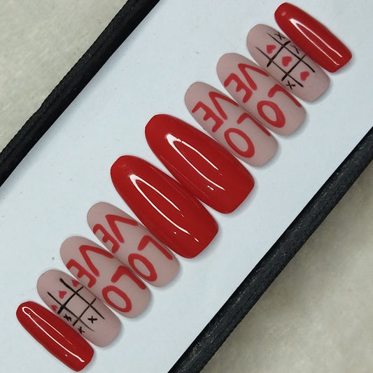 Valentine Collection: Red Love Tic-Tac-Toe Press on Nails Set // 734