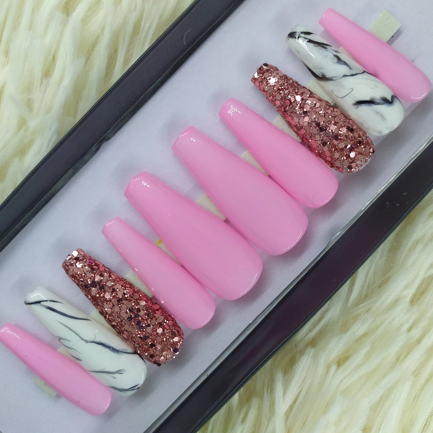 Baby pink marble with glitter accent Press on Nails // 125