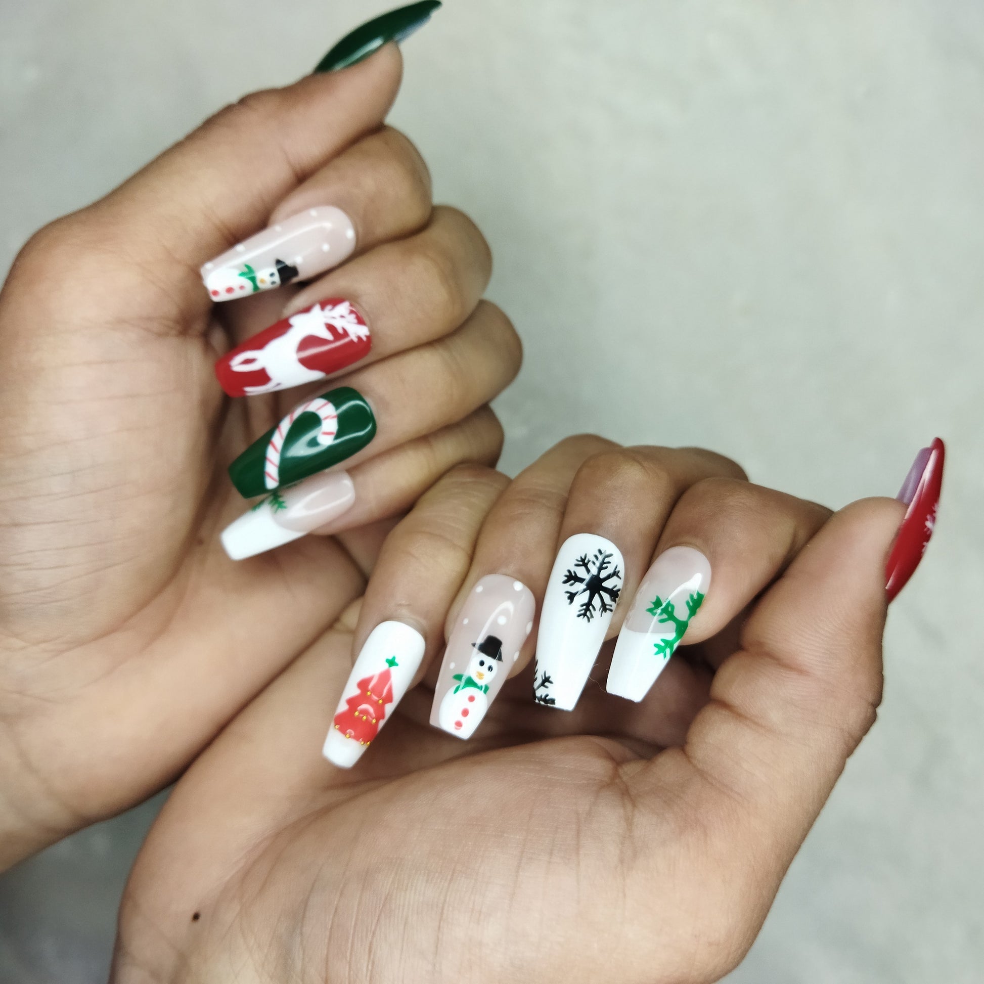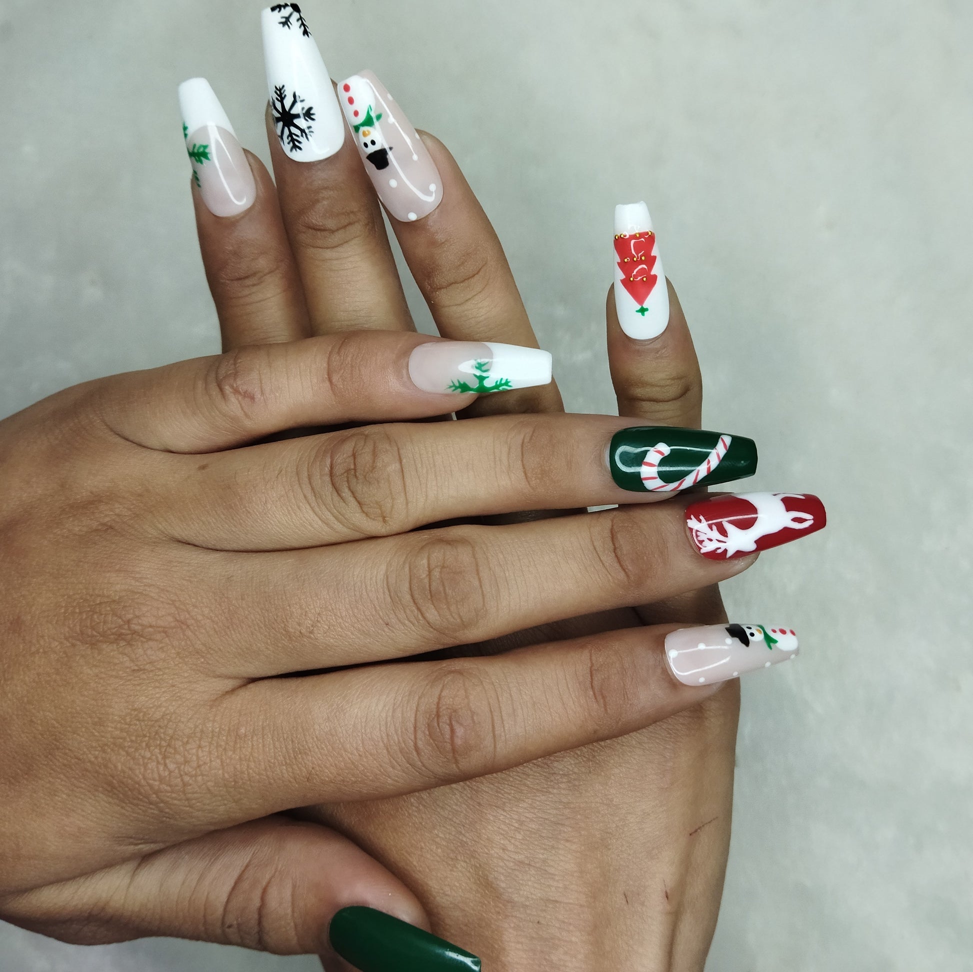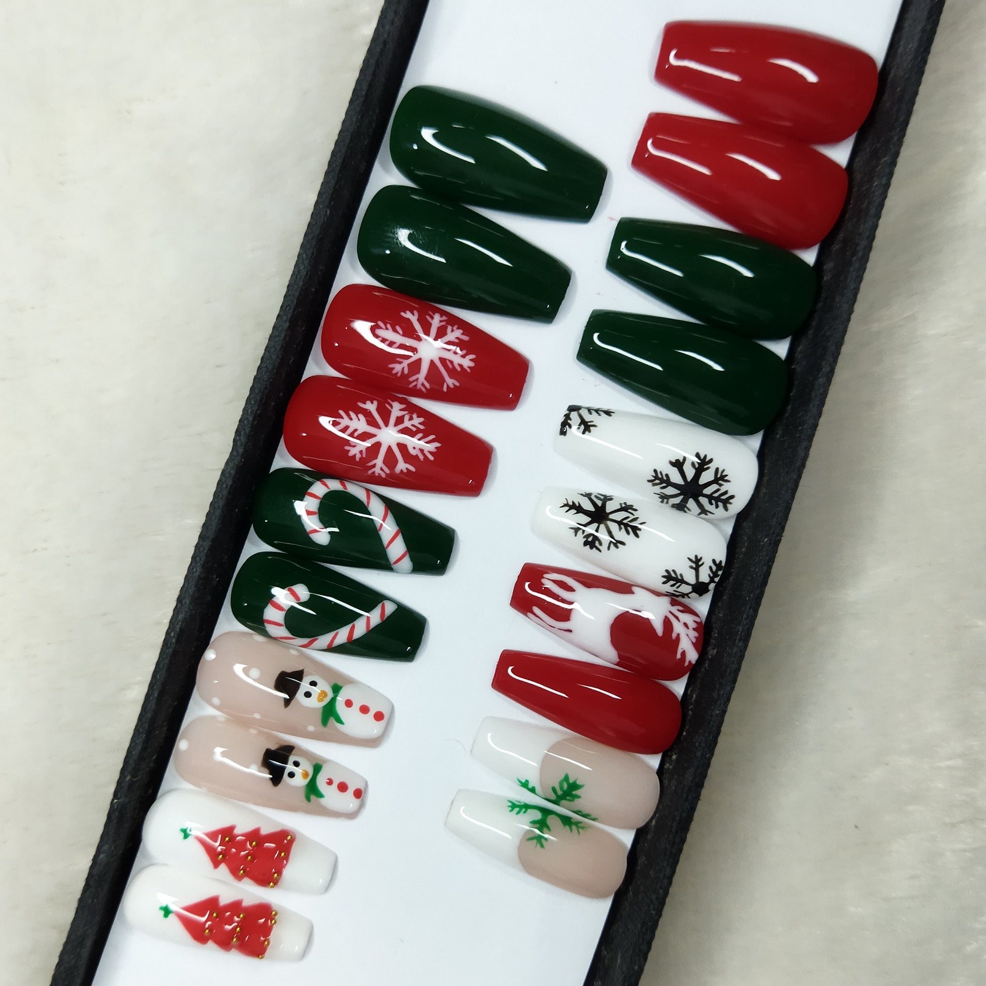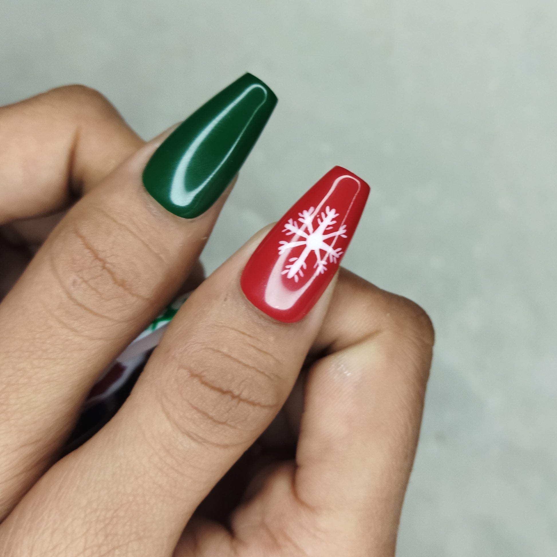 Christmas Collection : Glossy Green and Red Christmas Press on Nails Set