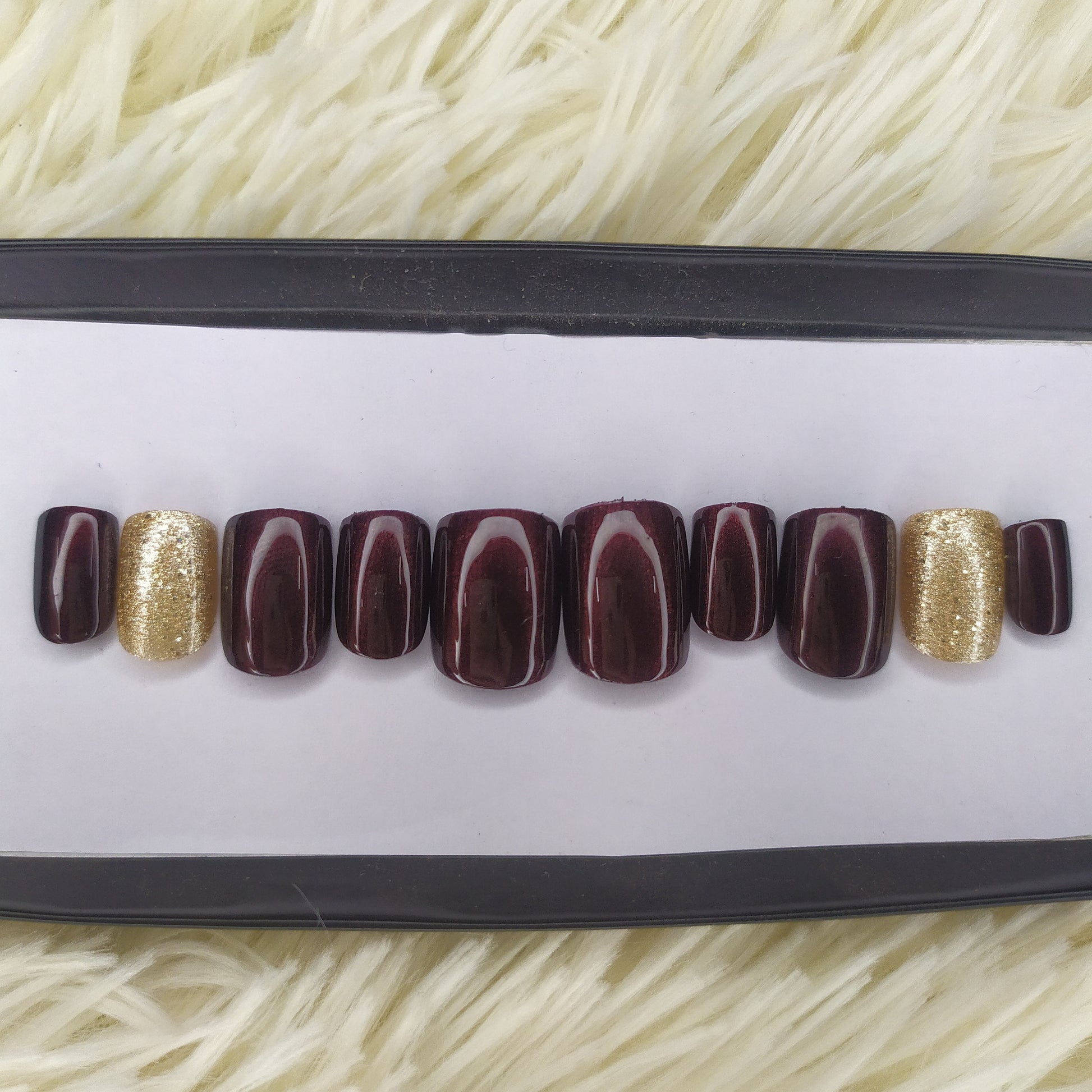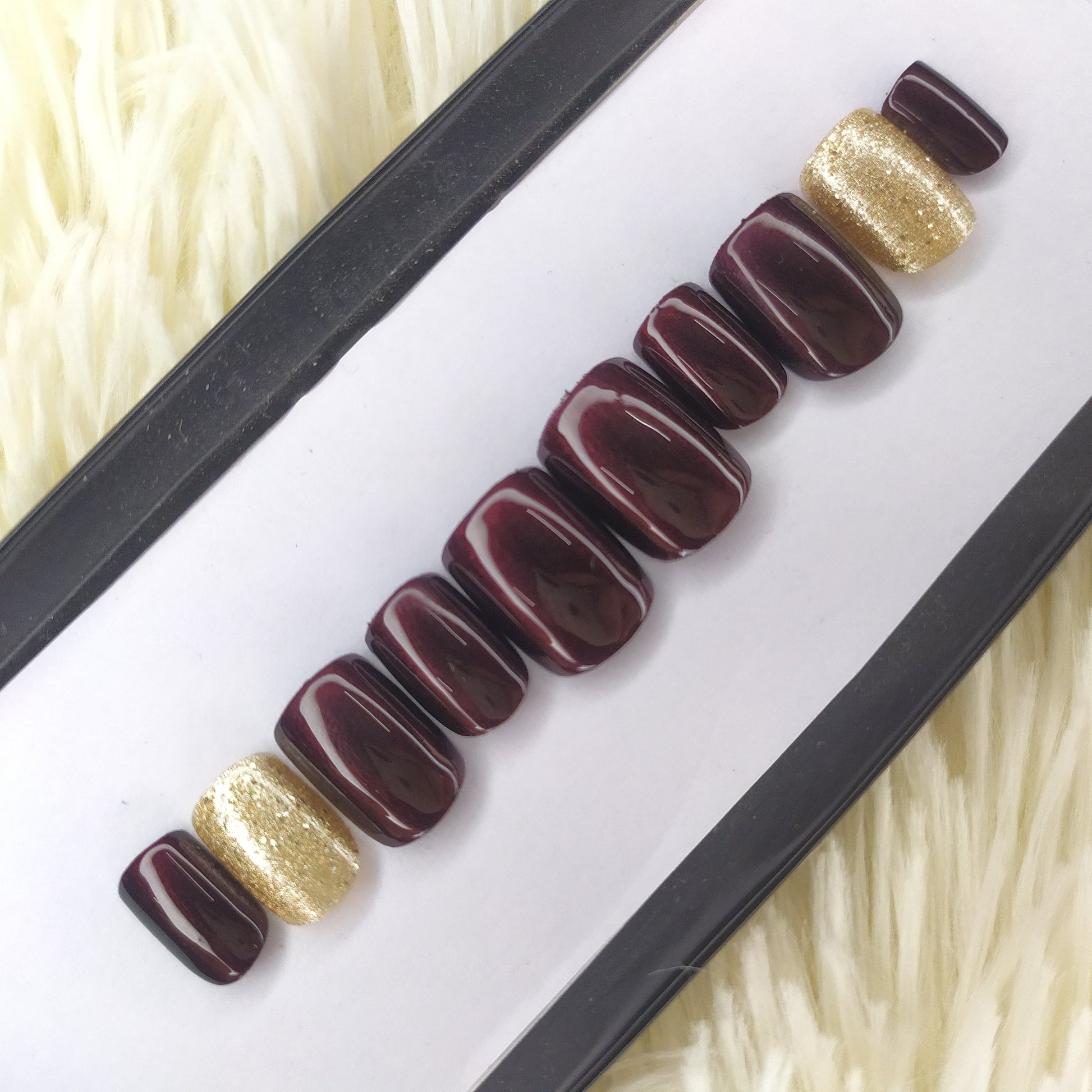 Dark Wine Red with Glitter Accent Press on Nails // 193
