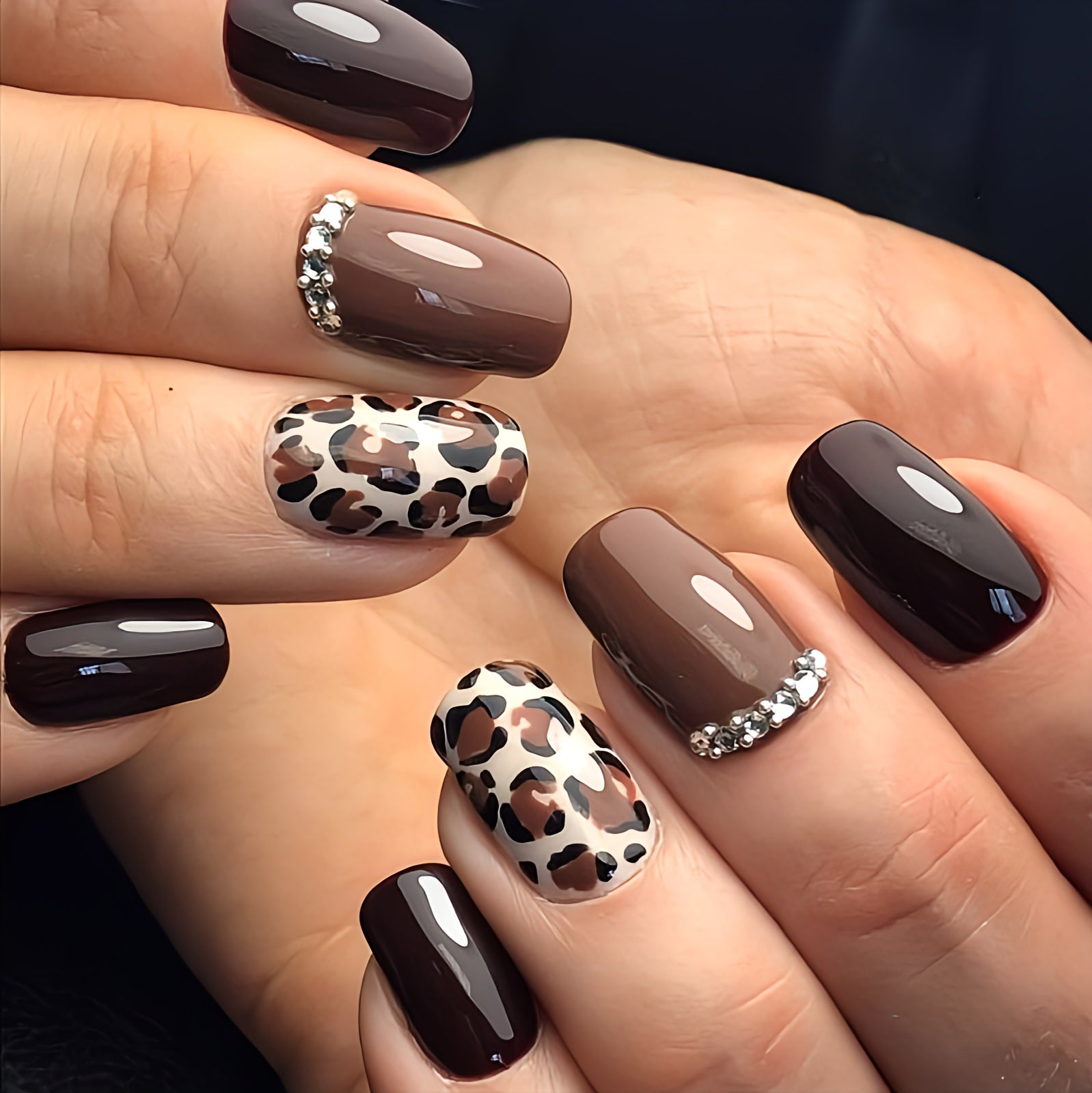 Glossy Black Studded Animal Print Press on Fake Nails // tns384