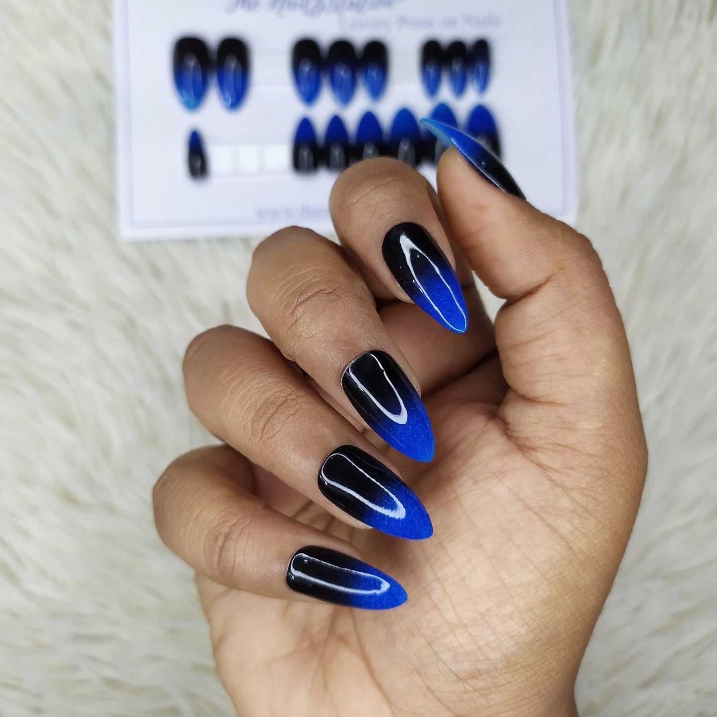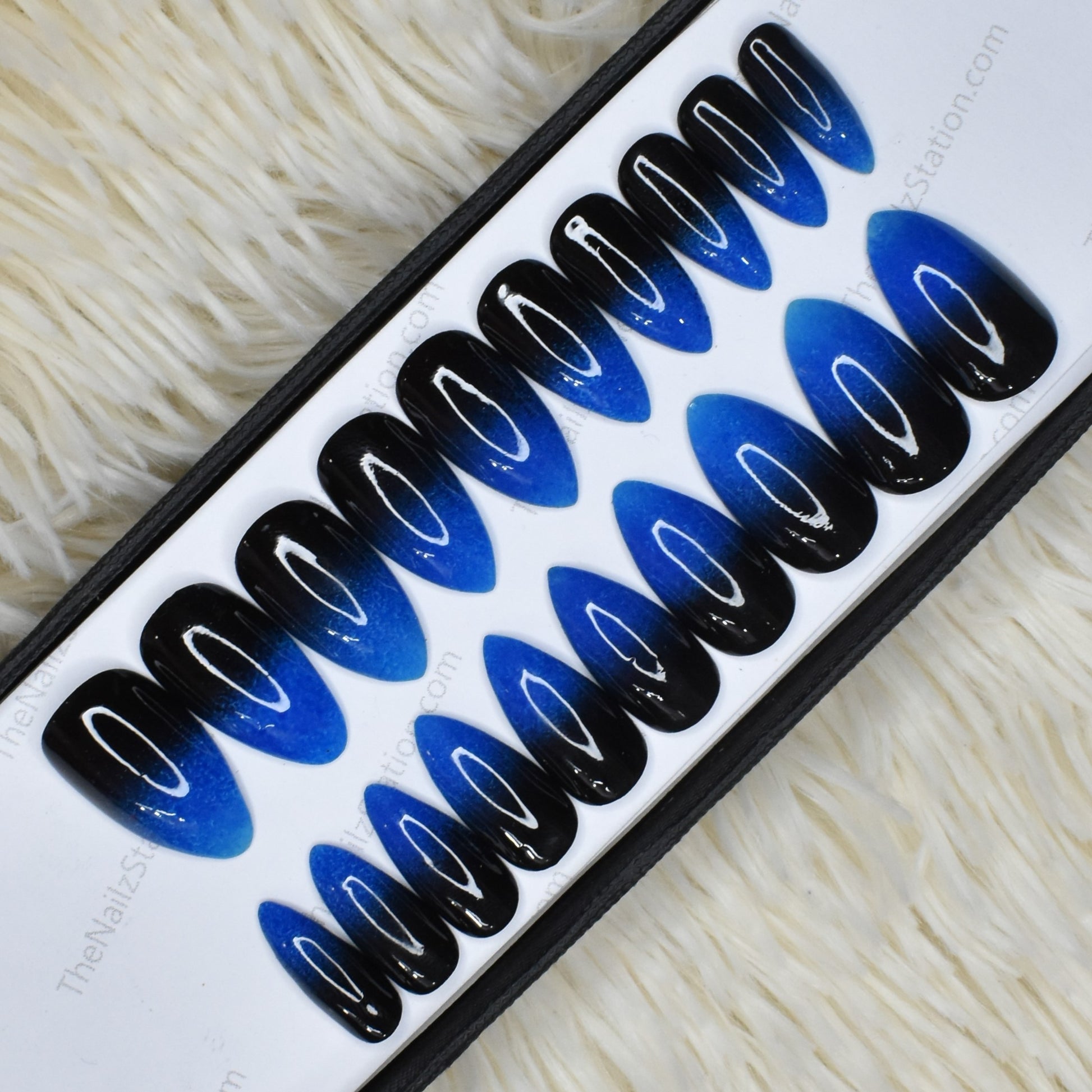 Glossy Blue and Black Ombre Press on Nails Set // 449