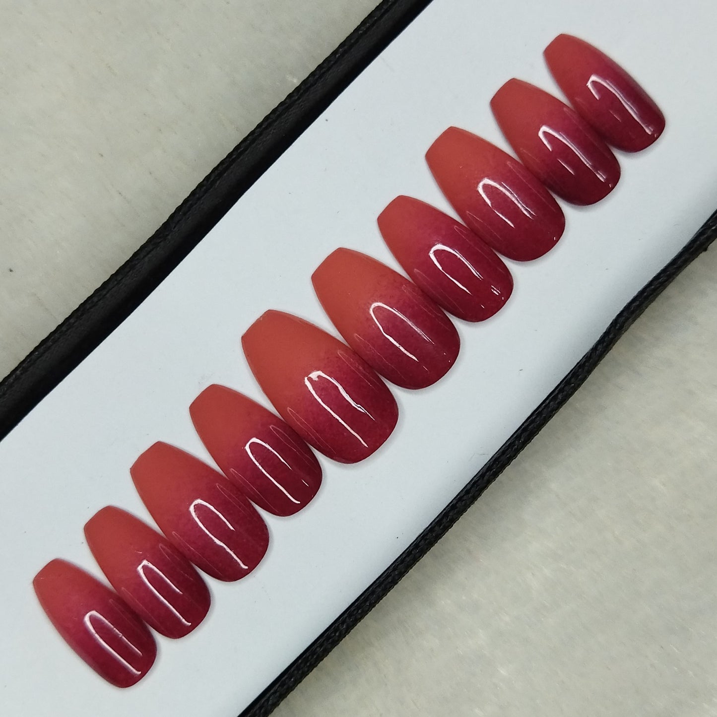 Glossy Dark Pink Ombre Press on Nails Set // 642