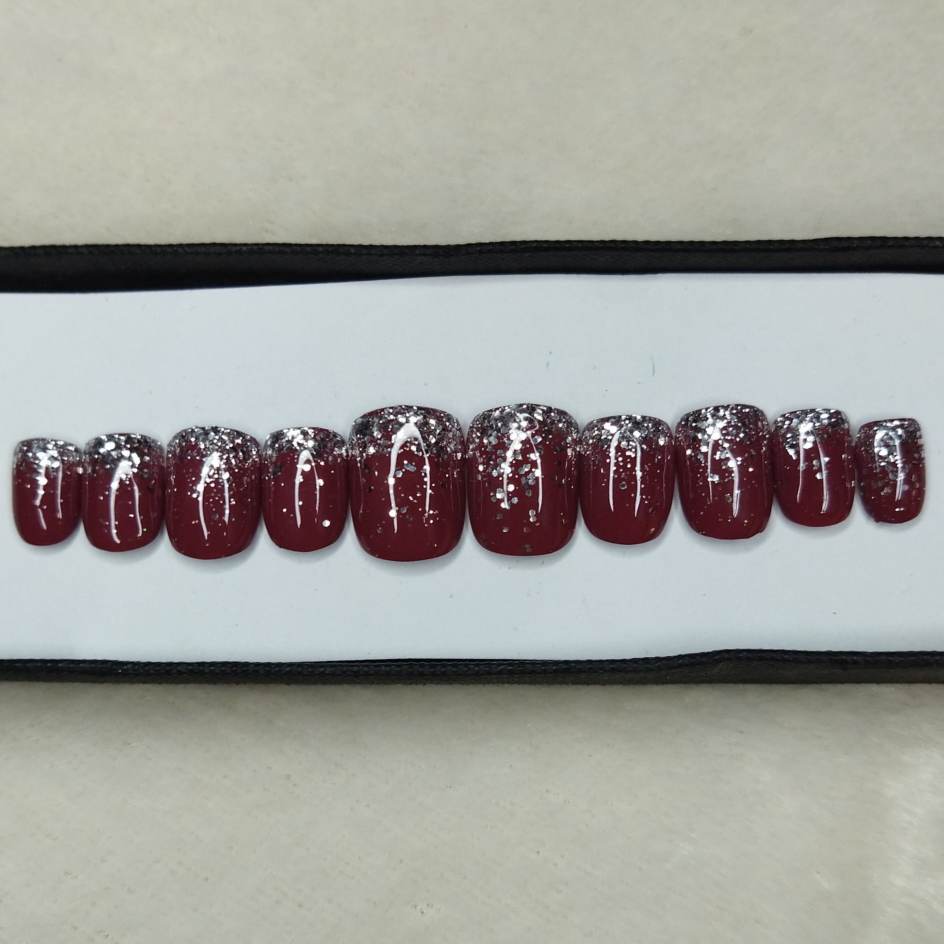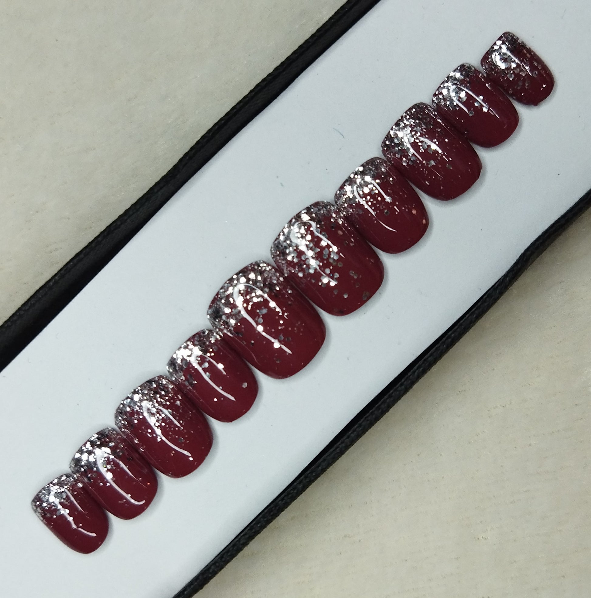 Glossy Dark Rose Glitter Ombre Press on Nails Set // 626