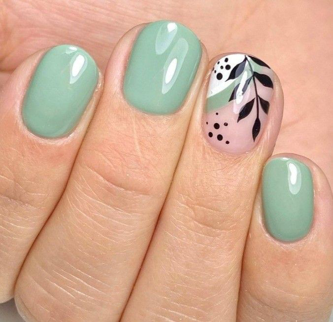 Glossy Green floral Press on Fake Artificial Nails / tns543
