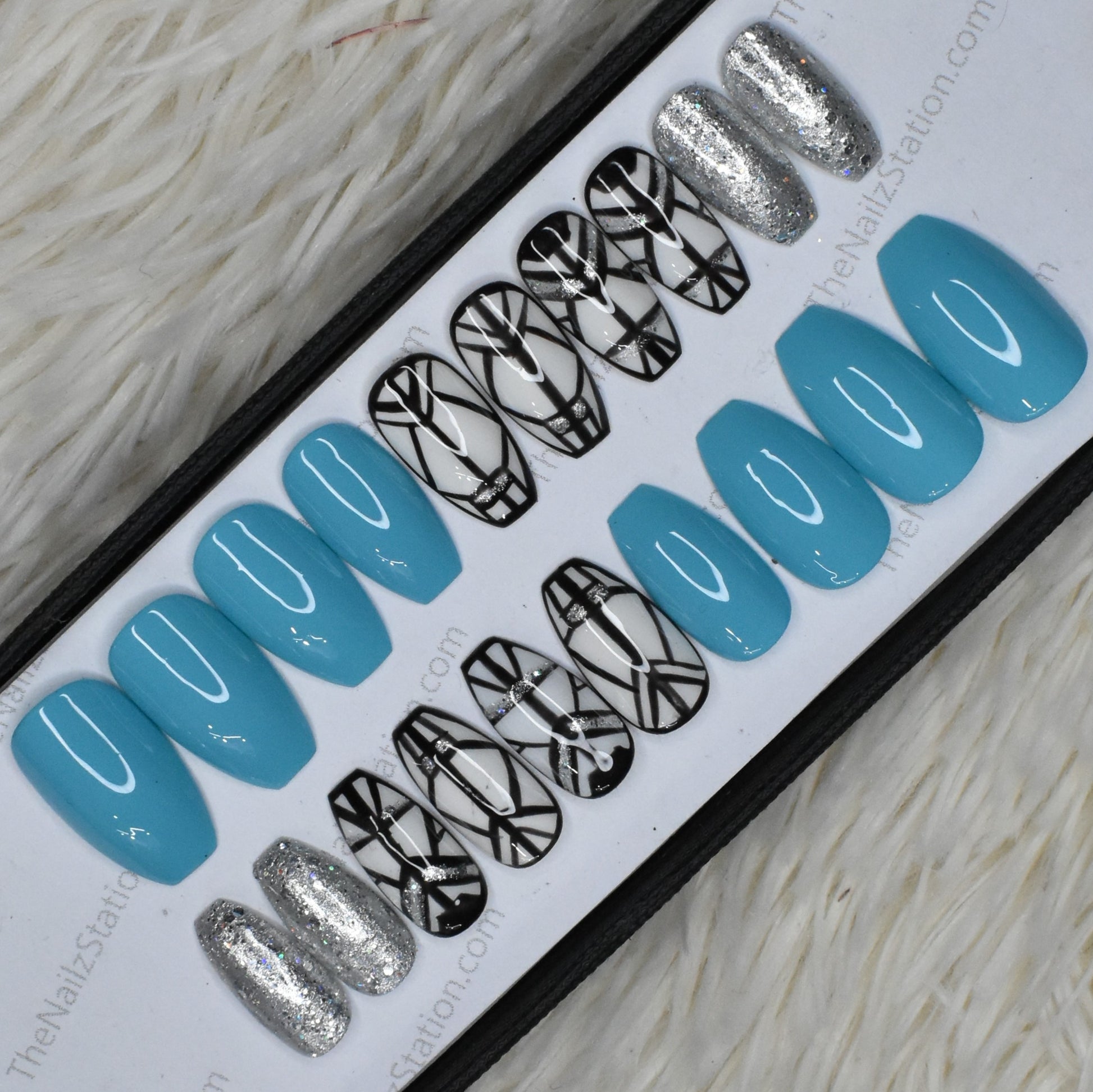 Glossy Light Blue Abstract Press on Nails Set // 430