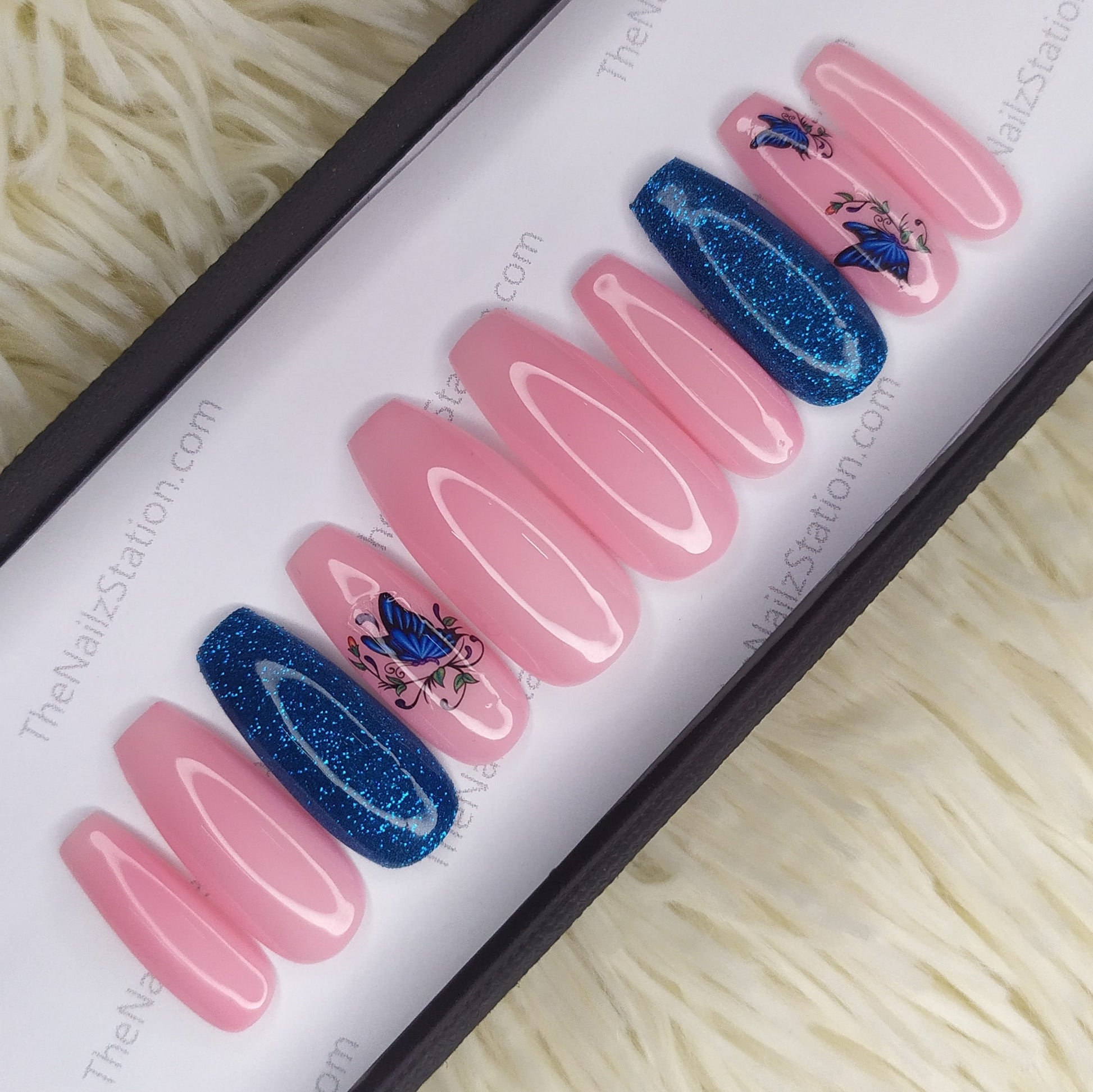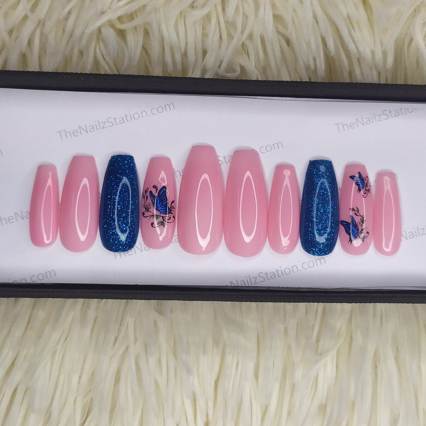 Glossy Light Pink Butterfly Press on Nails Set // 341