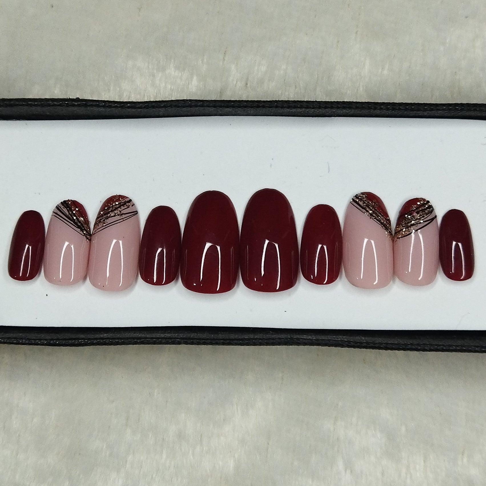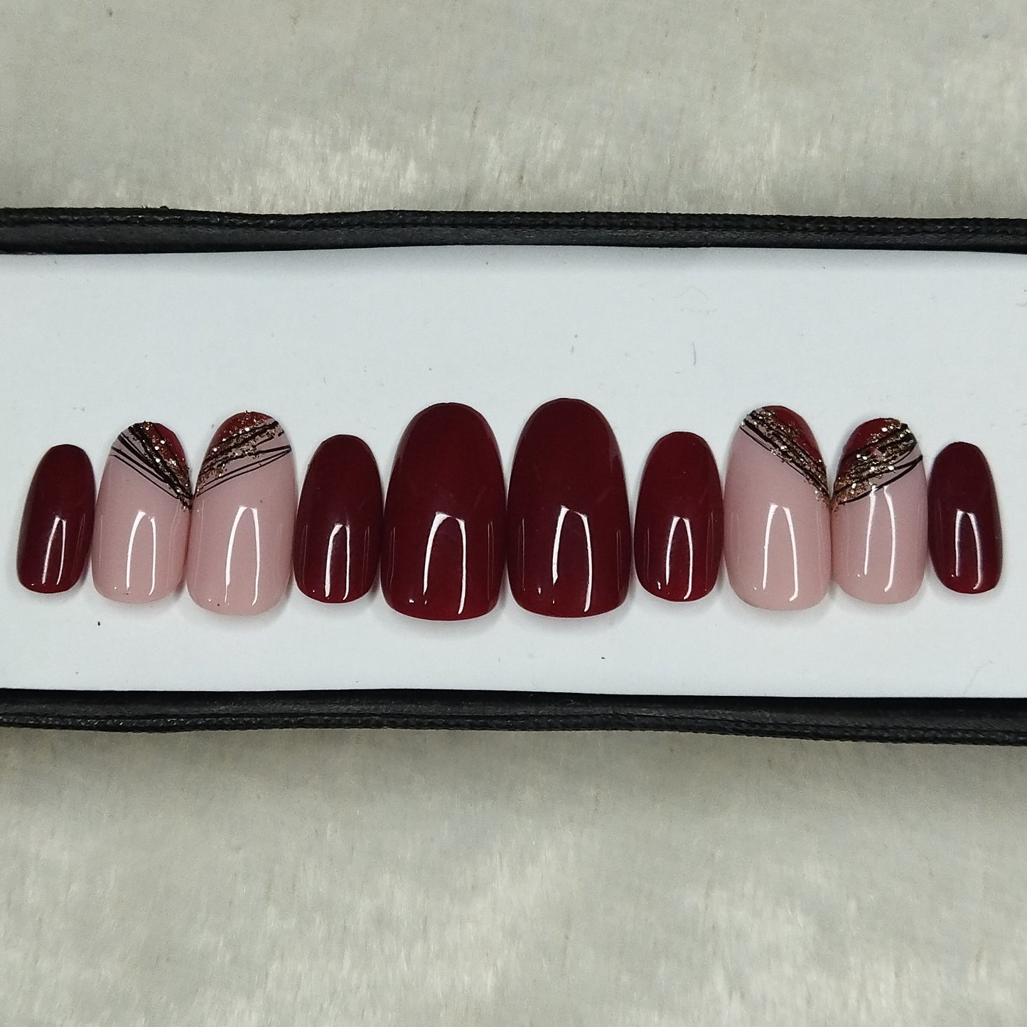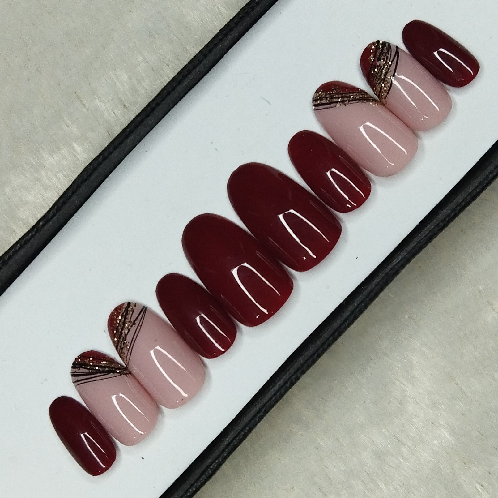 Glossy Maroon Golden Press on Nails Set // 830