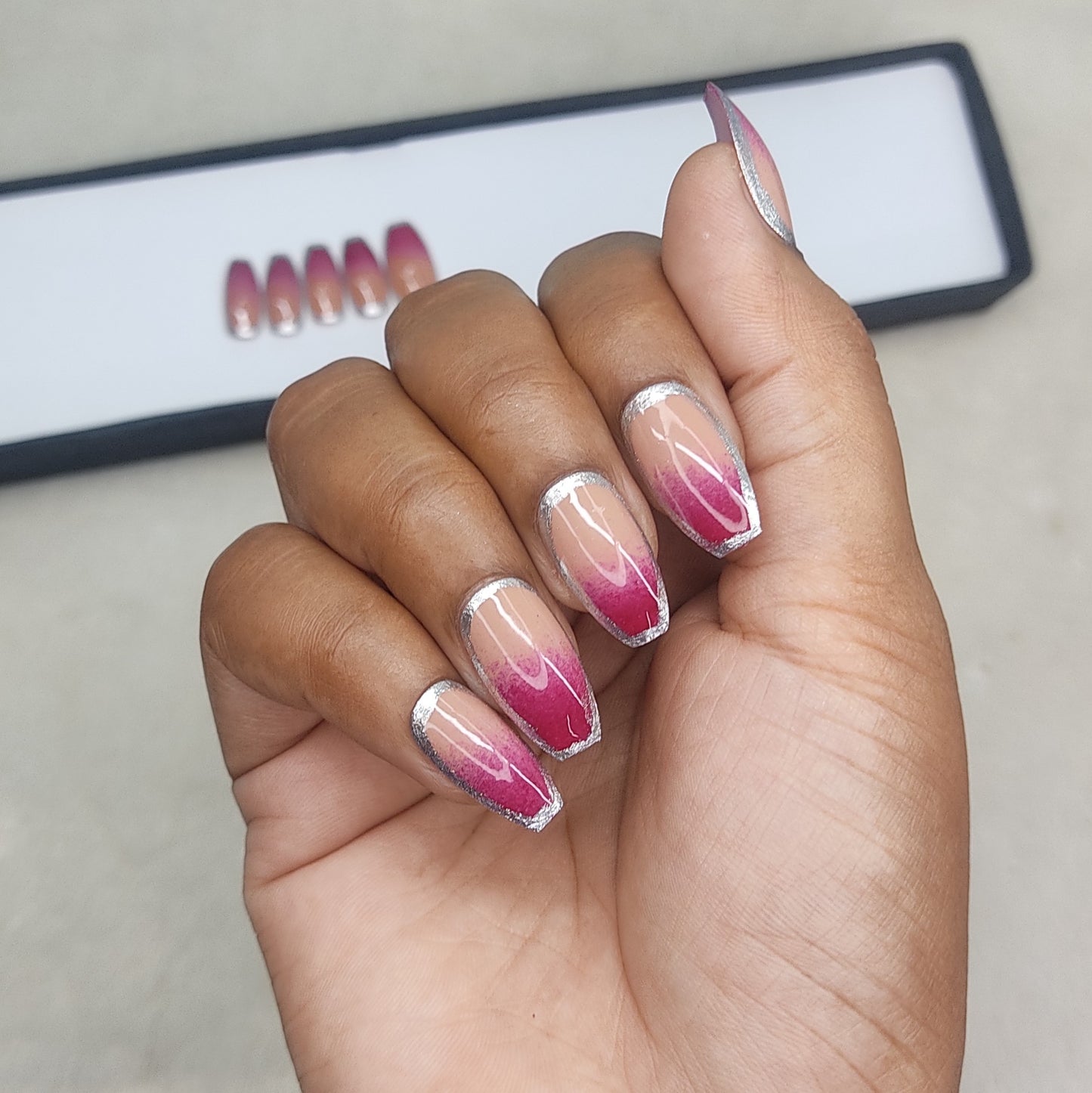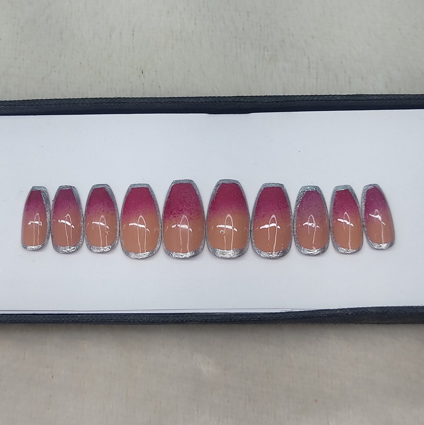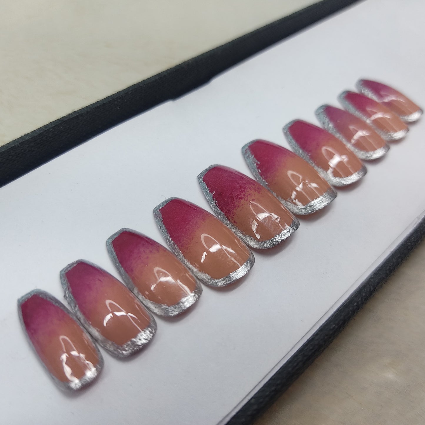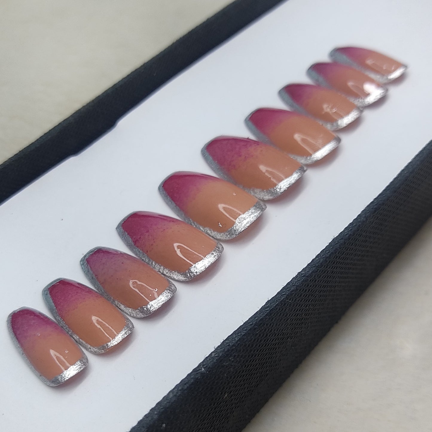 Glossy Nude And Pink Ombre French Press on Nails // 1040