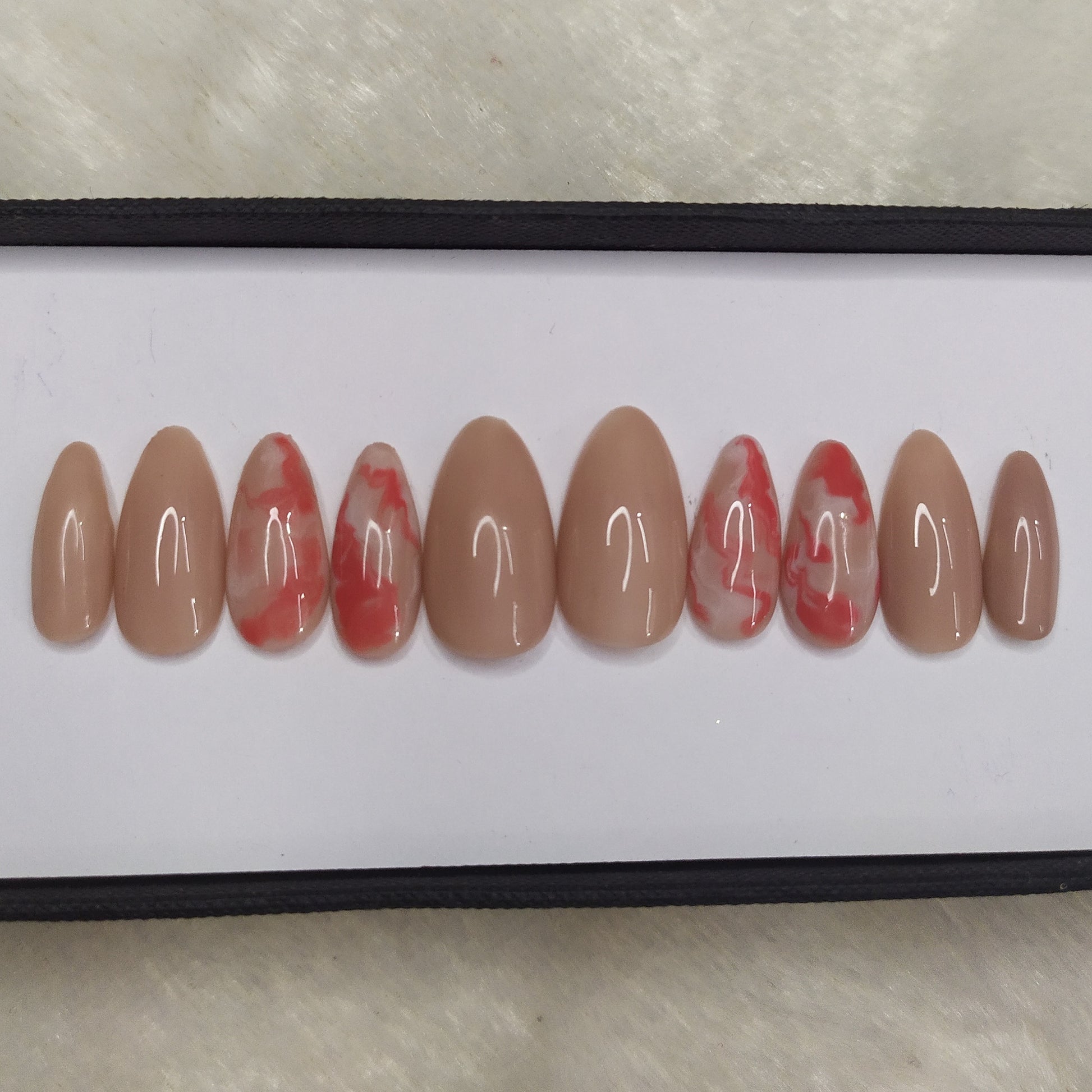 Glossy Nude Red Smoke Press on Nails Set // 502
