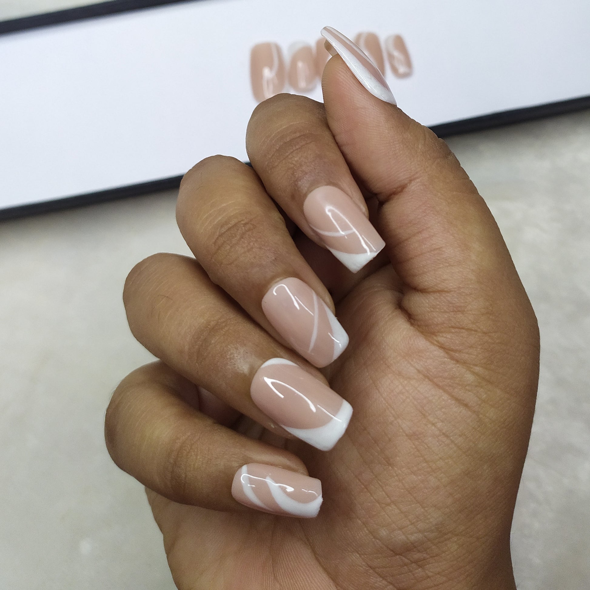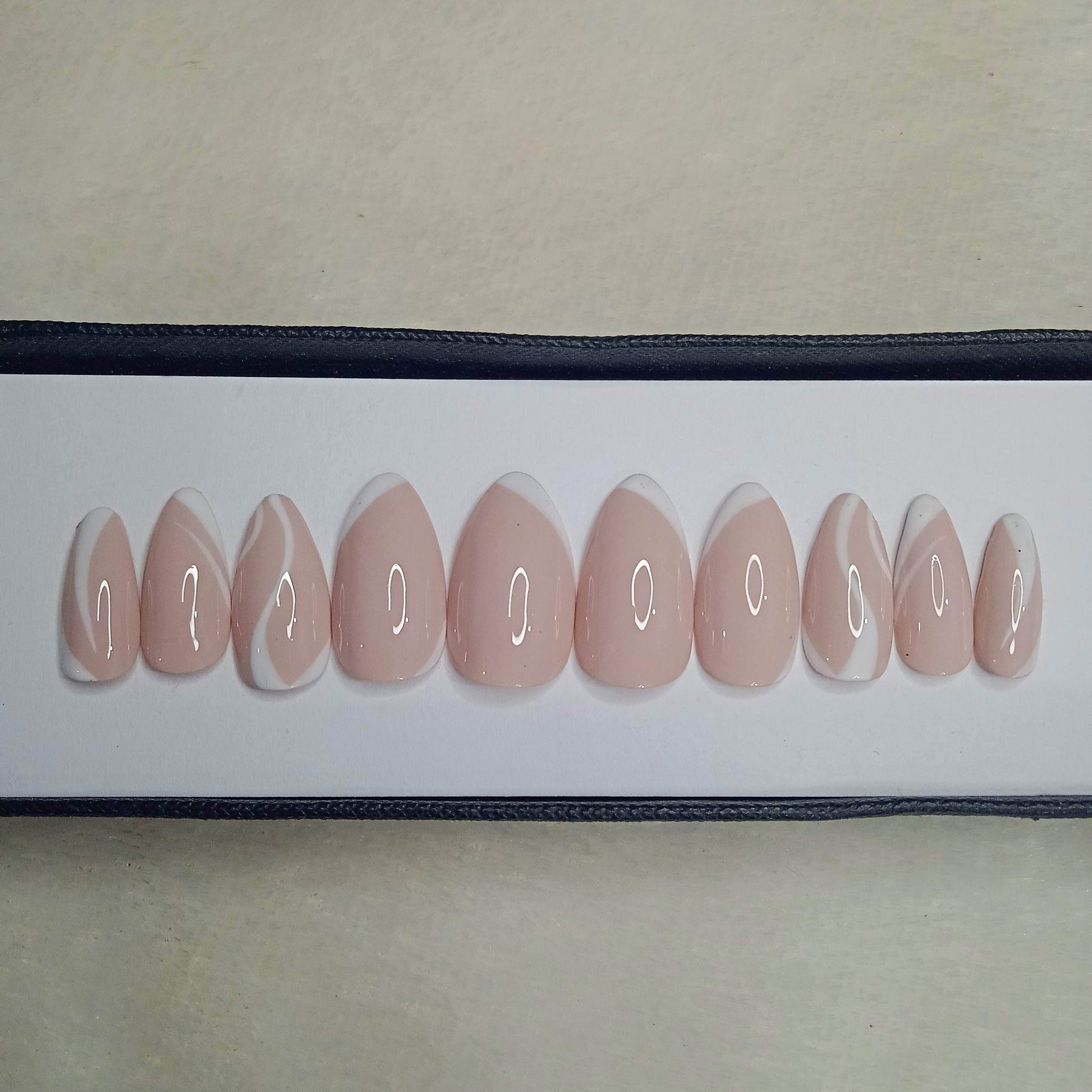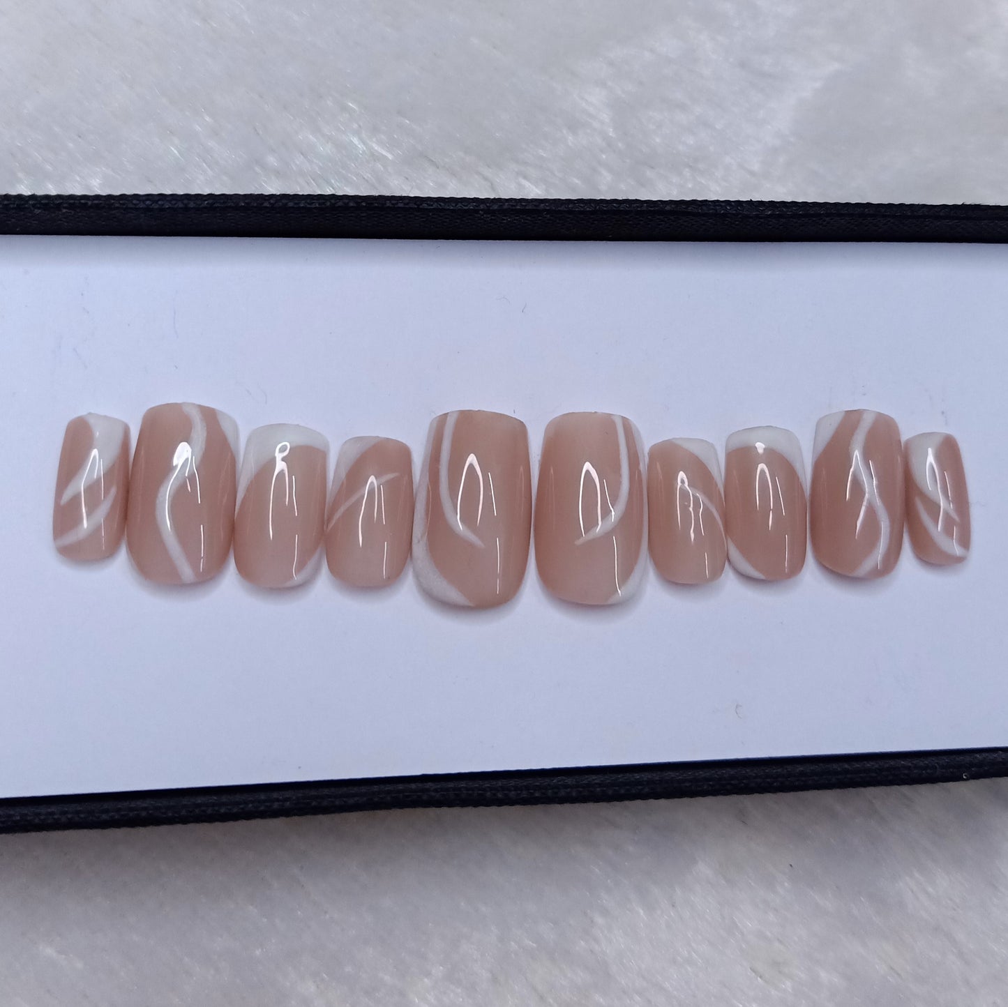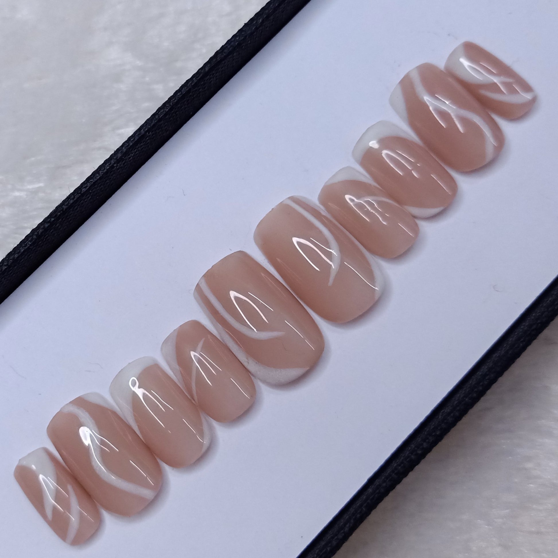 Glossy Nude White Abstract Press on Nails Set // 511