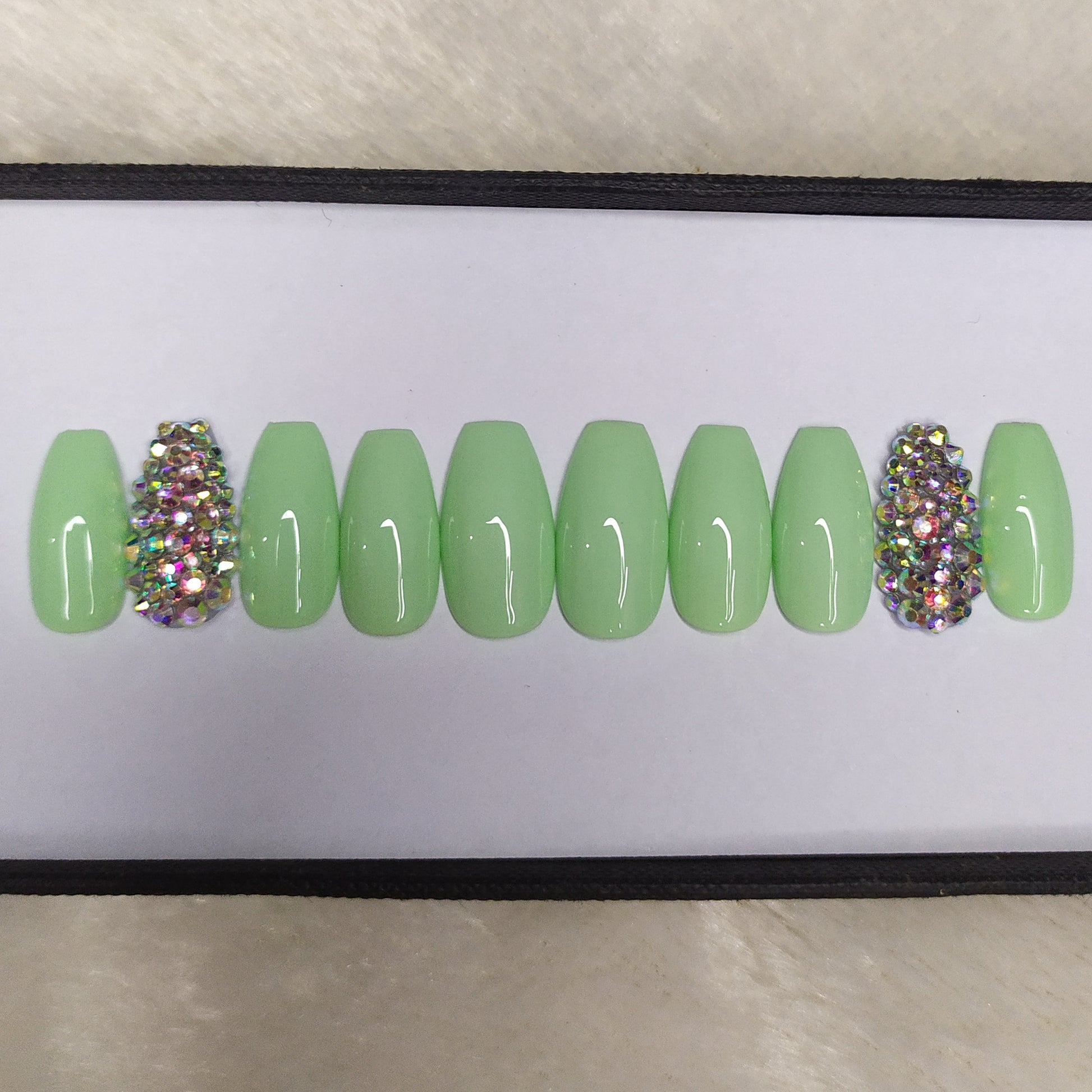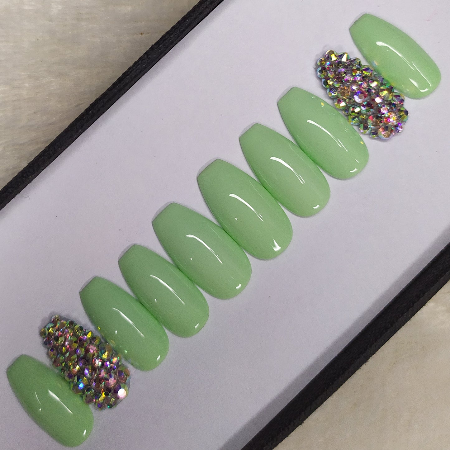 Glossy Pastel Green Studded Press on Nails Set // 536