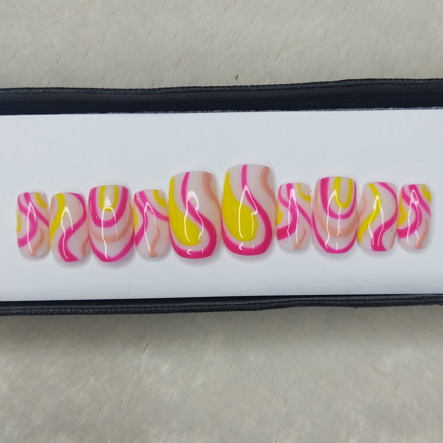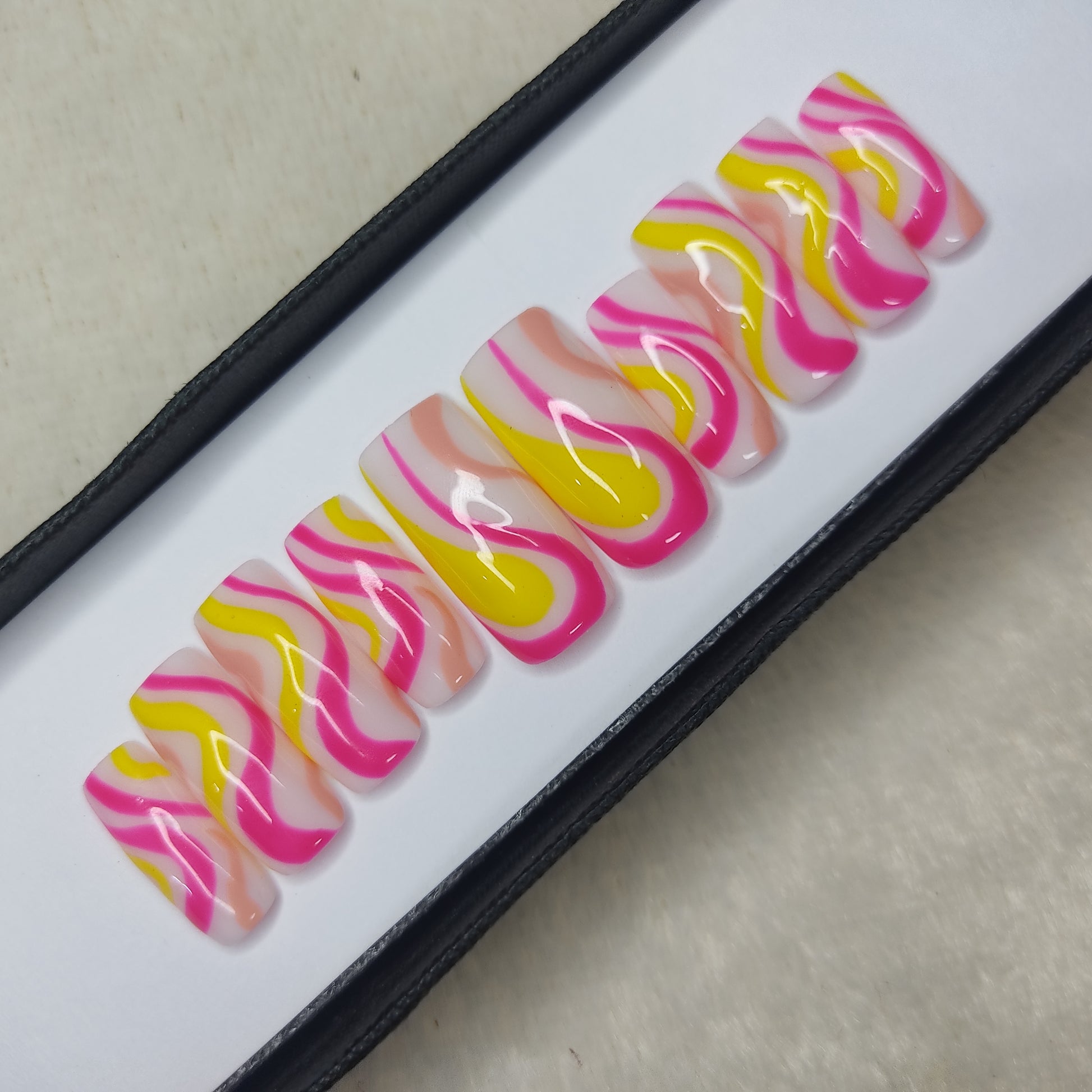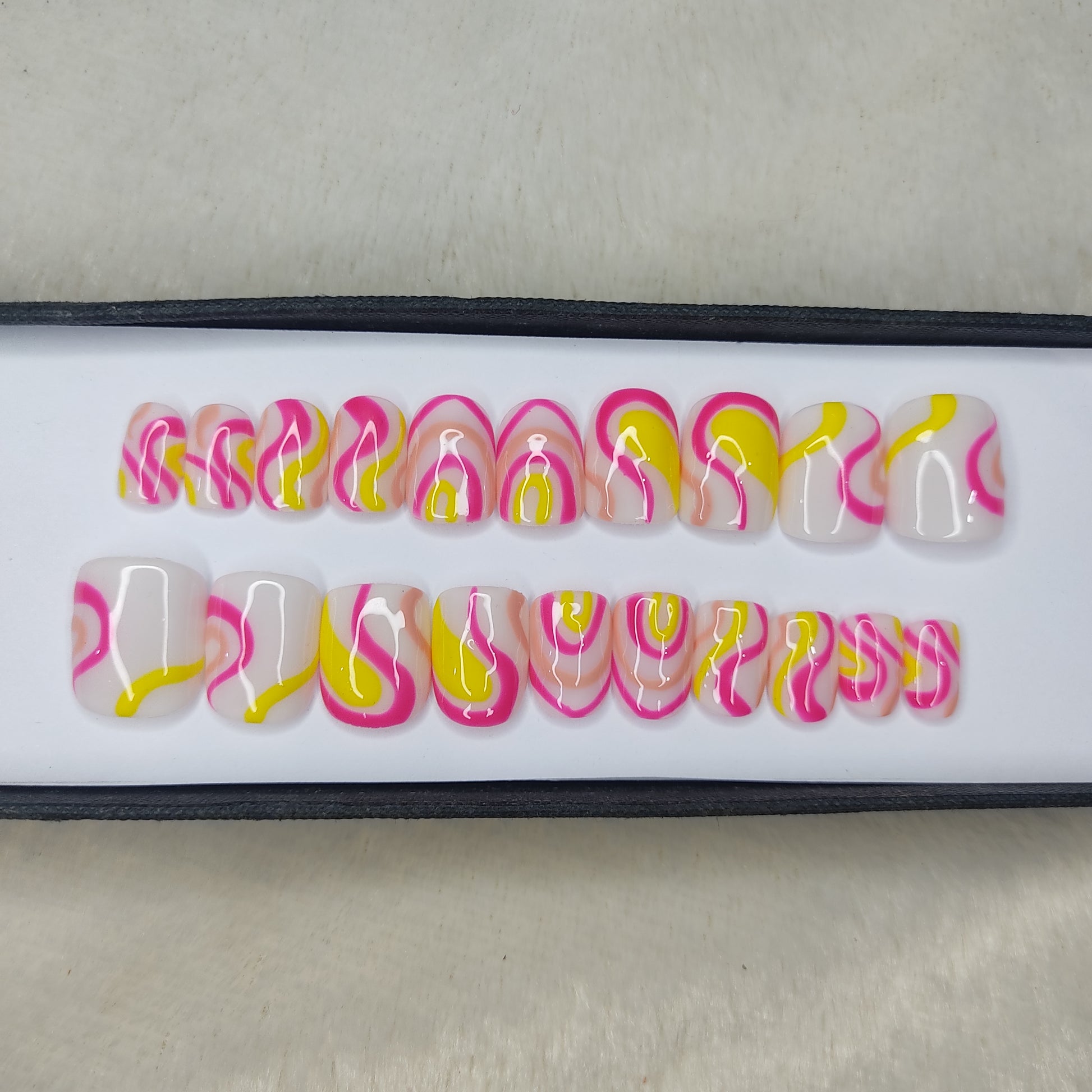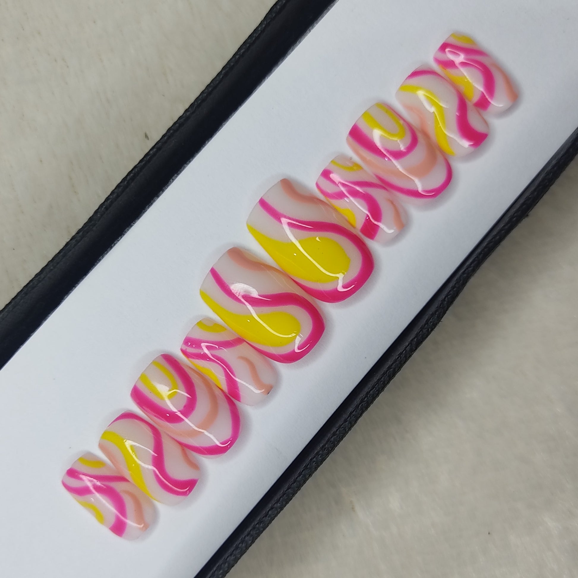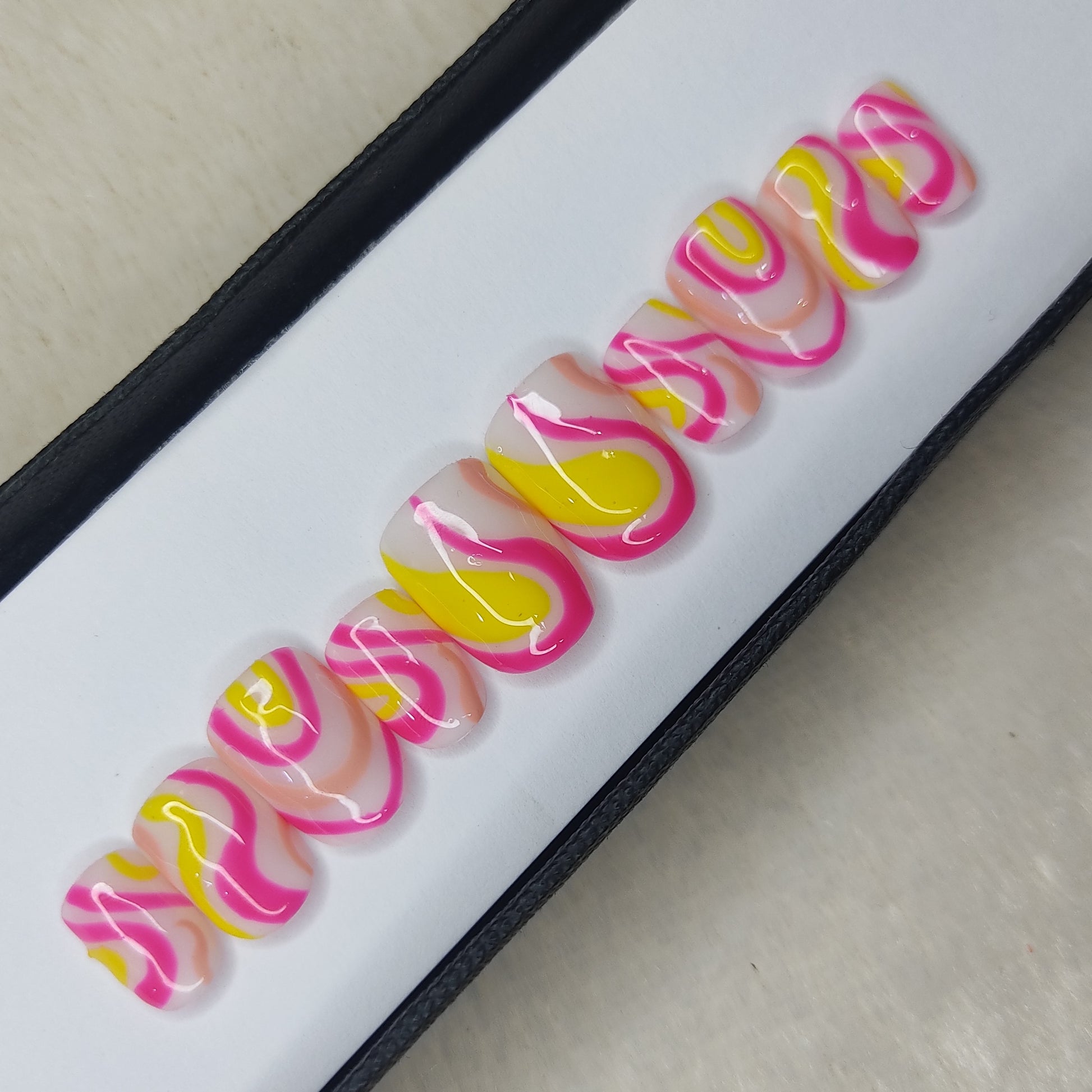 Glossy Pink and Yellow Swirl Press on Nails // 997