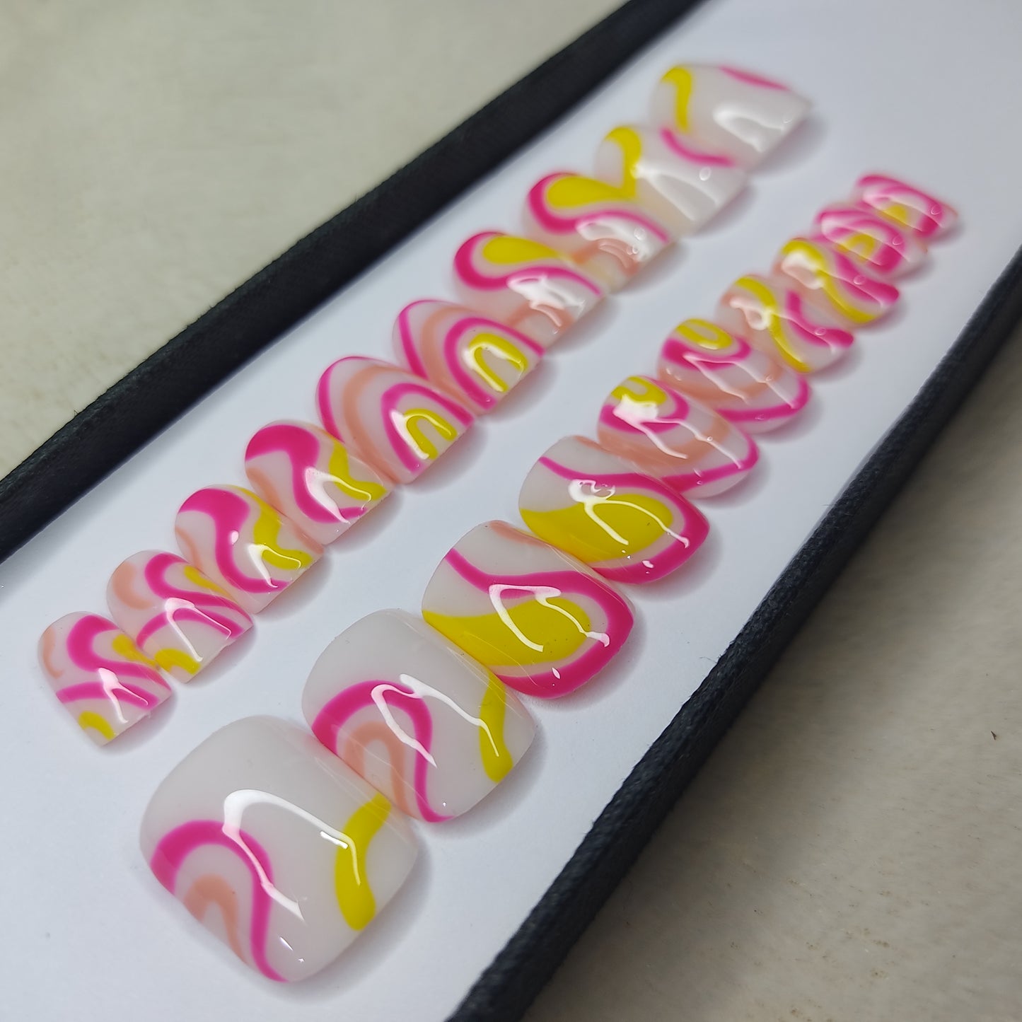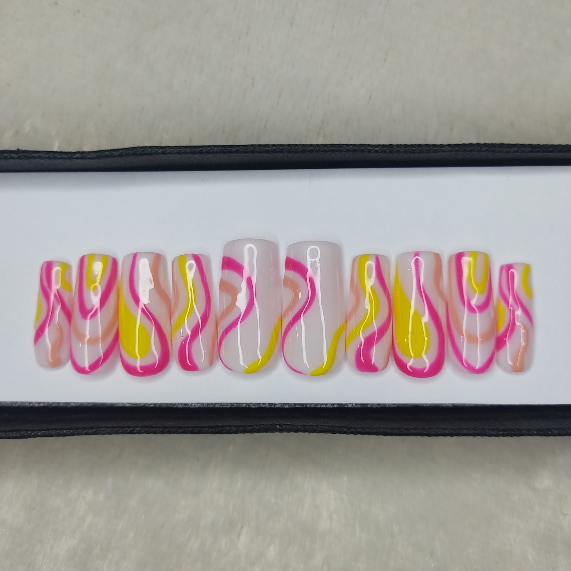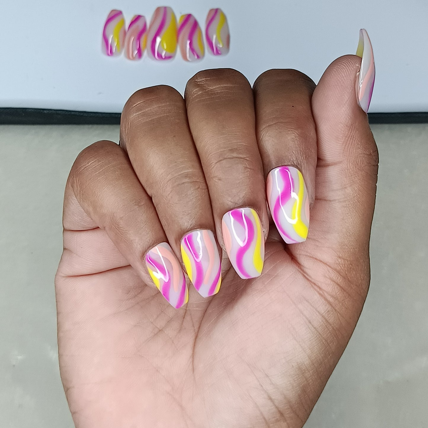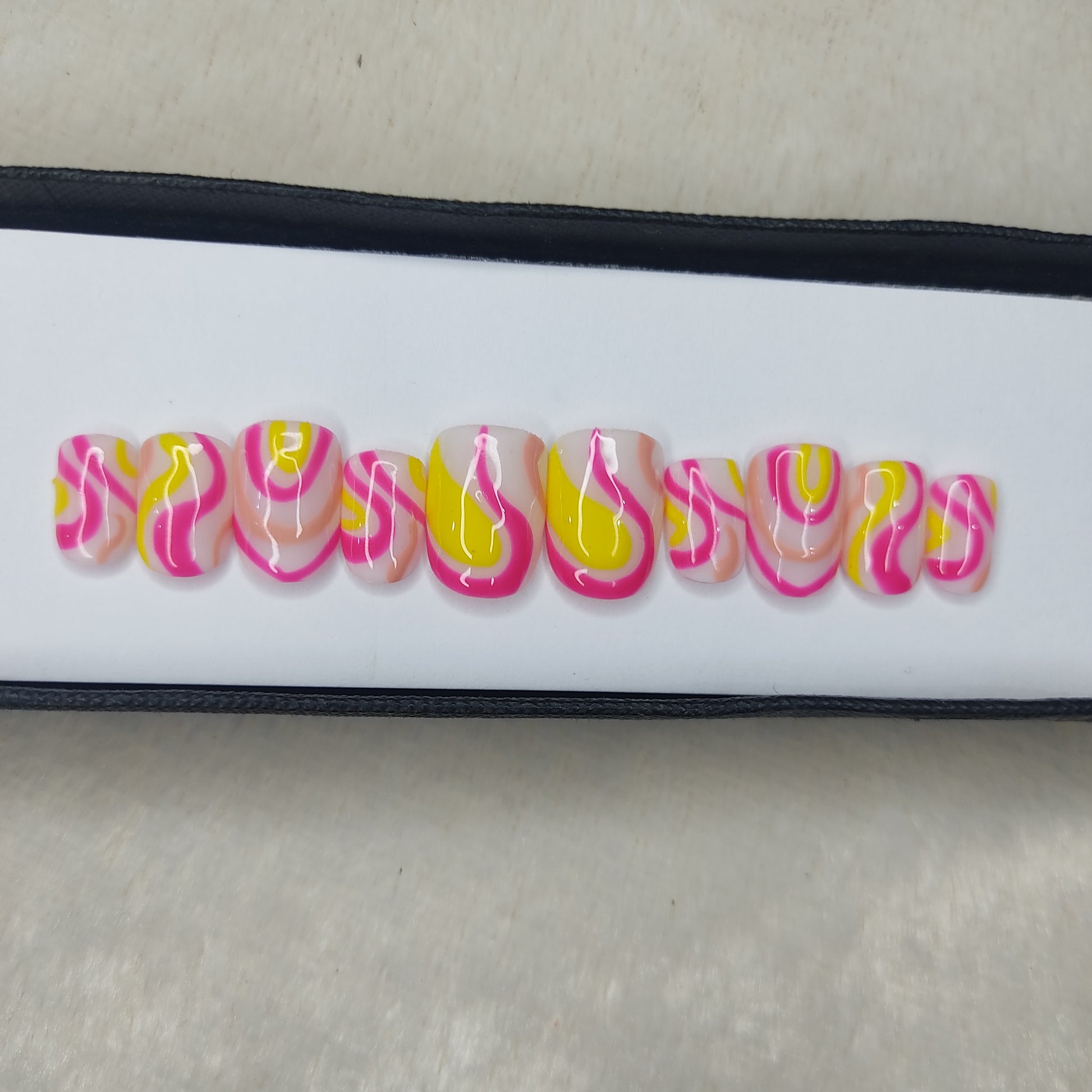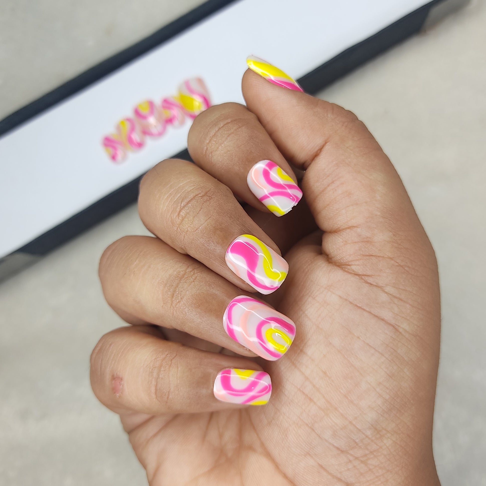 Glossy Pink and Yellow Swirl Press on Nails // 997