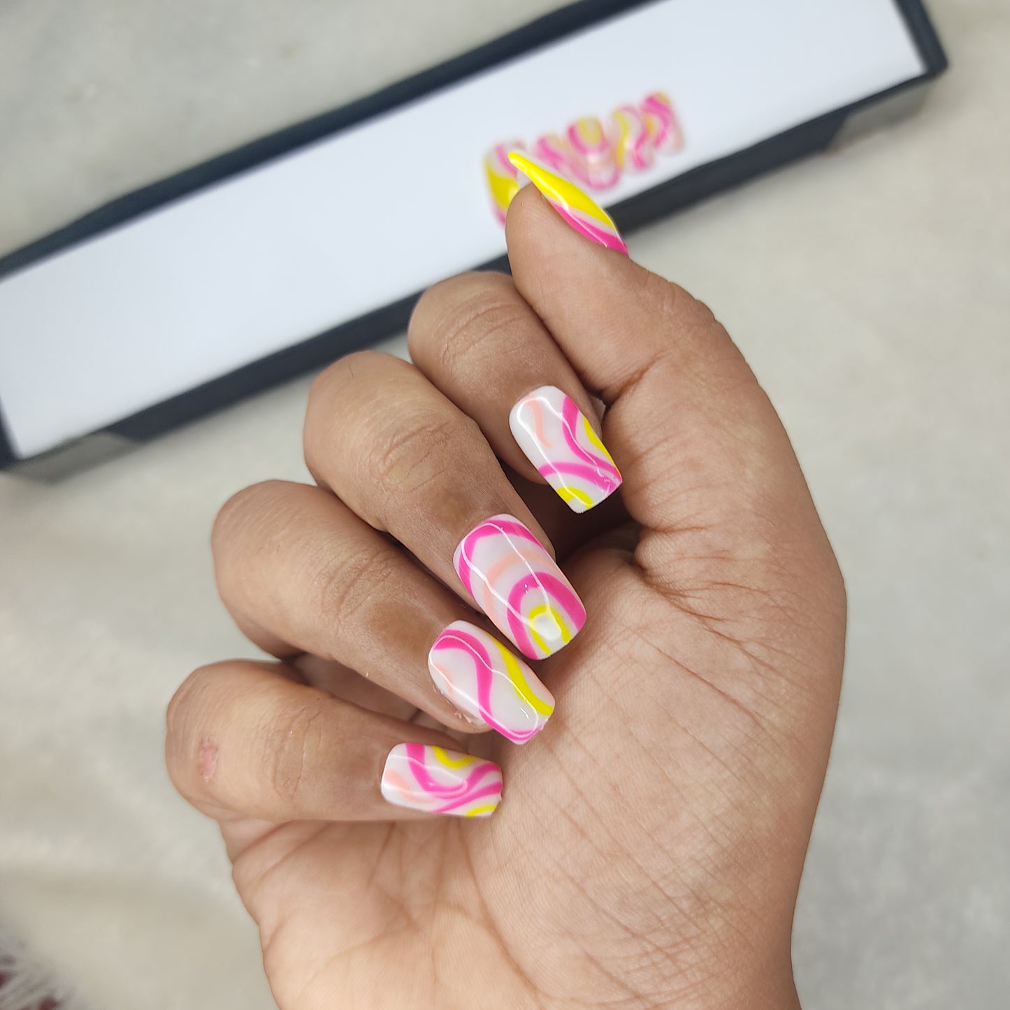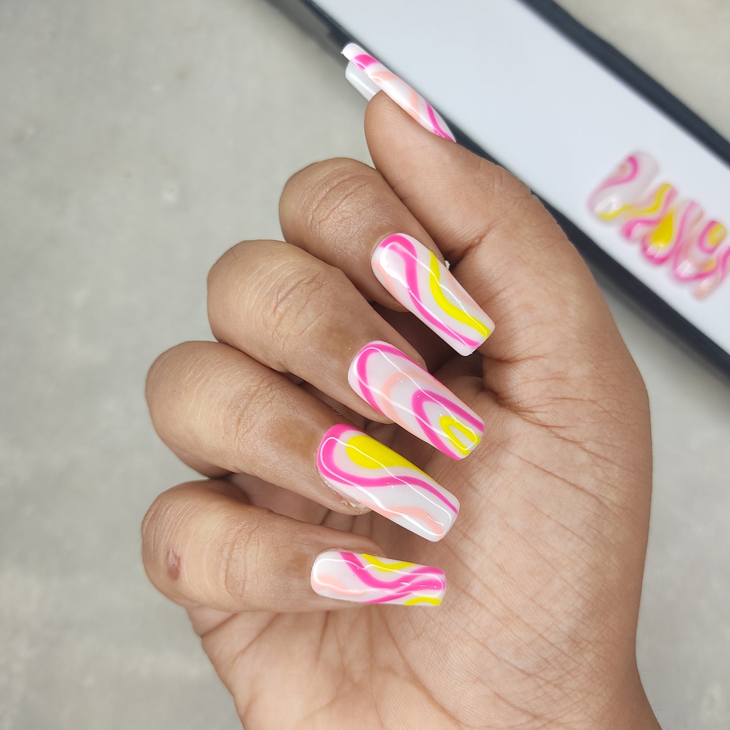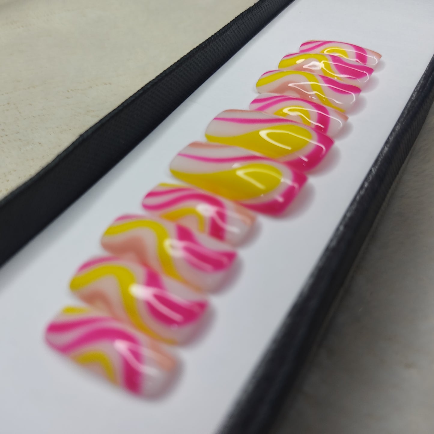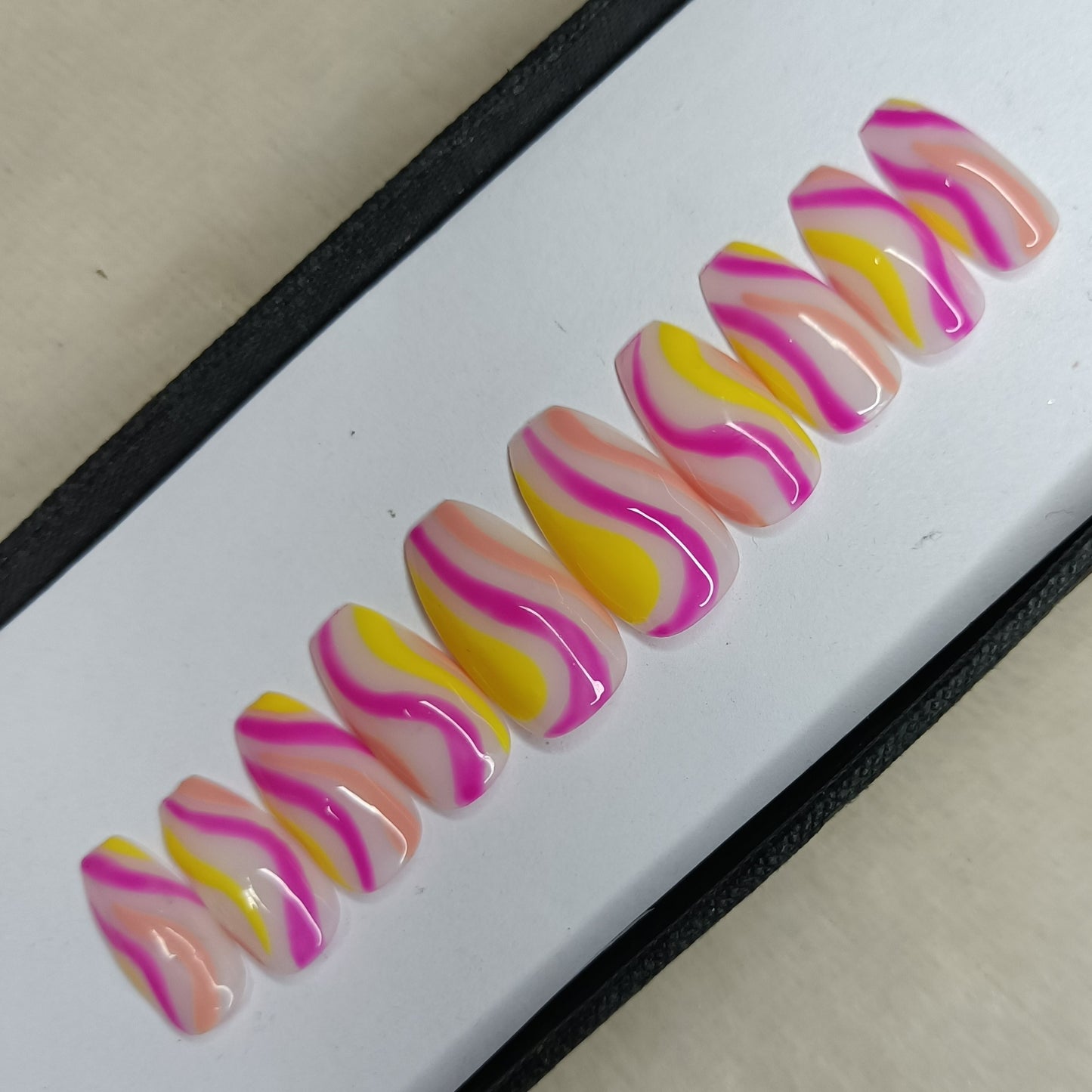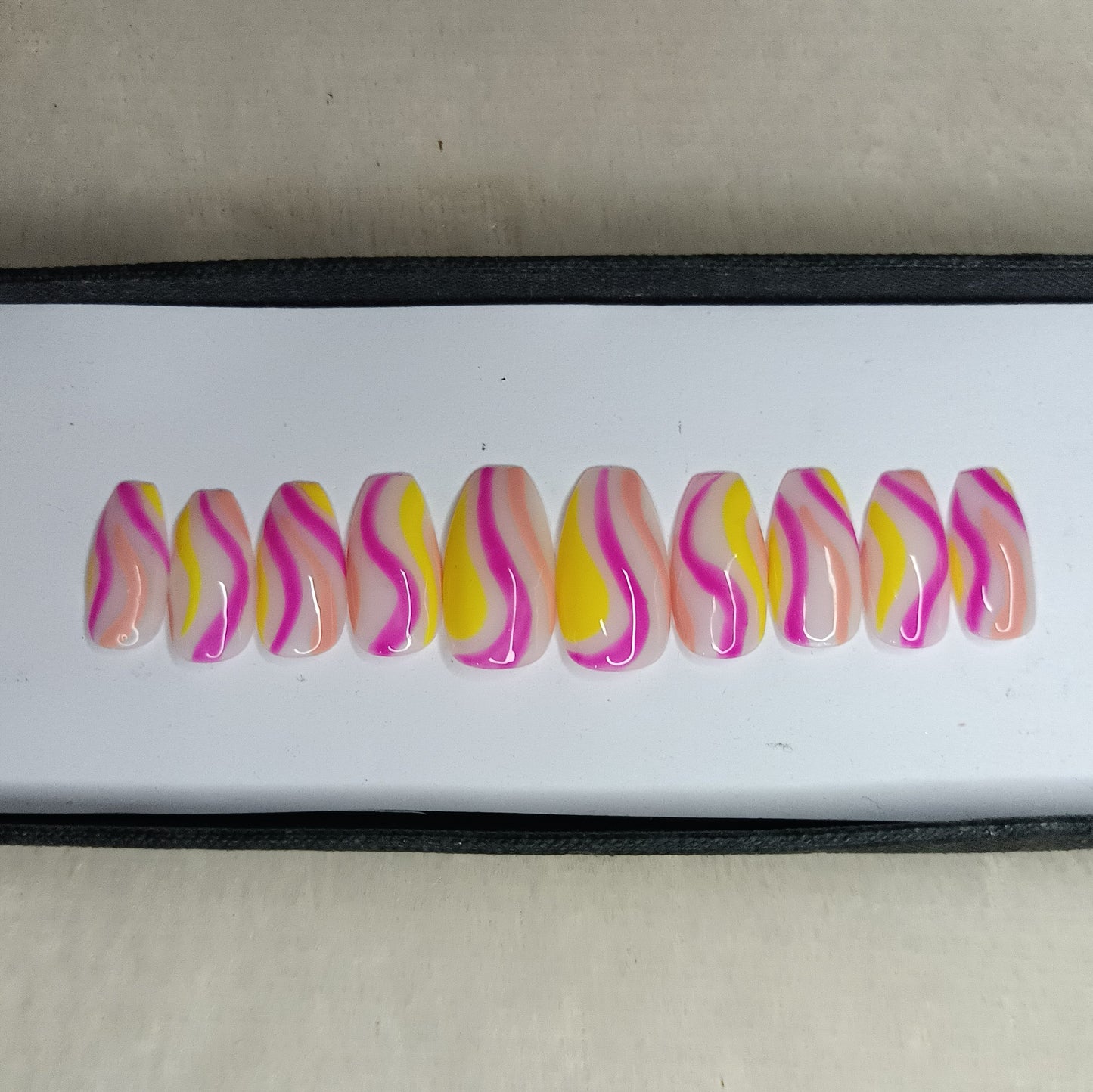 Glossy Pink and Yellow Swirl Press on Nails // 997