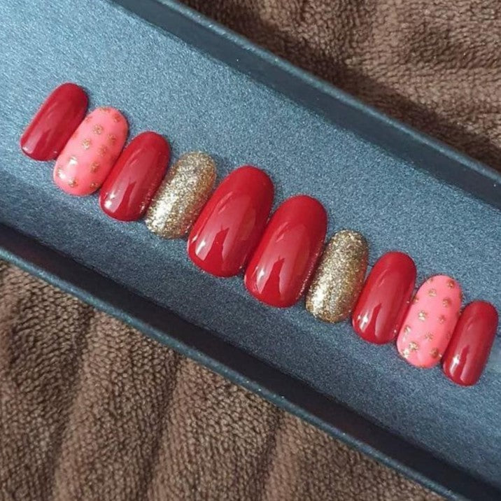 Glossy Red Glitter Press on Fake Artificial Nails / tns830
