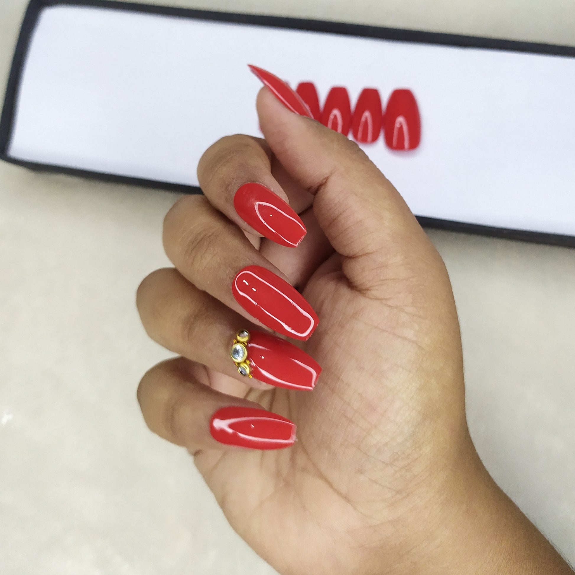 Introducing The NailzStation's luxurious 20-pack press-on nails, perfect for on-the-go glam! Reusable and long lasting, experience ultimate shine with our glossy effect and high quality glue. Get creative with customisation options, and enjoy fast, express delivery. Trusted by thousands and loved by celebrities and influencers, The NailzStation is India's No. 1 brand, offering the first ever customisation option for press-on nails. Get yours today!