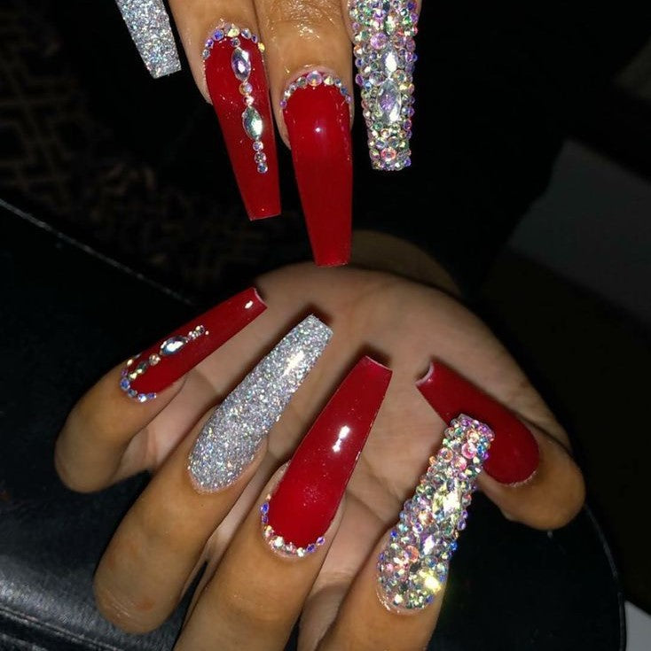Glossy Red Studded Press on Fake Nails // tns155