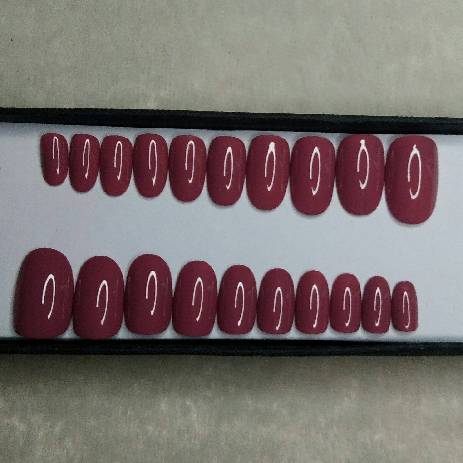 Bought this in Coffin shape.. glue is pretty strong and long lasting.. have used twice till now.. the nails are cute and the sizes recvd were just right..