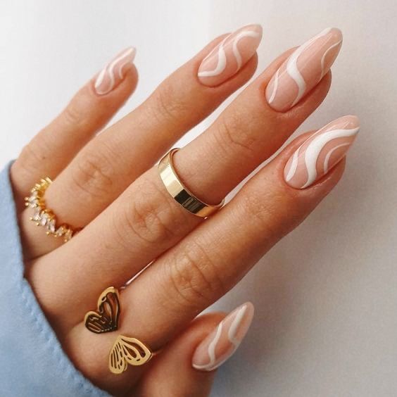 Glossy White Swirls Press on Nails // tns109