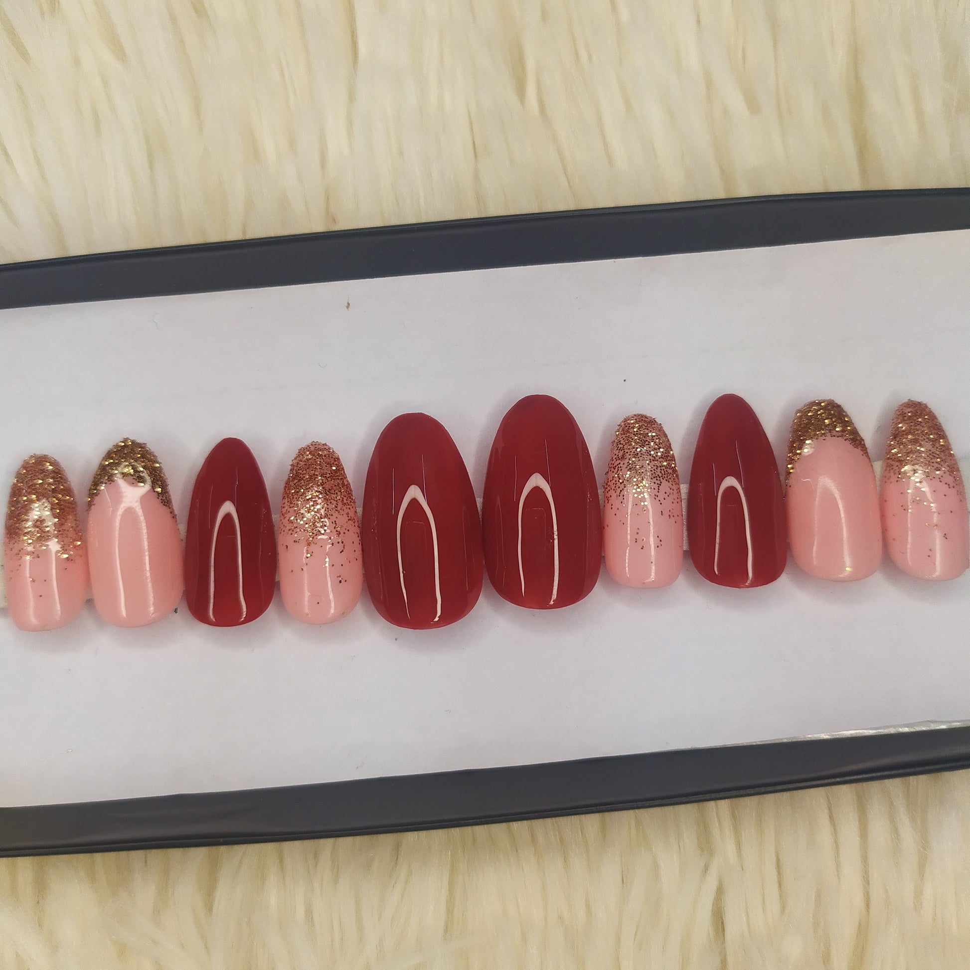 Glossy Nude Pink Glitter Press on Nails Set // 168