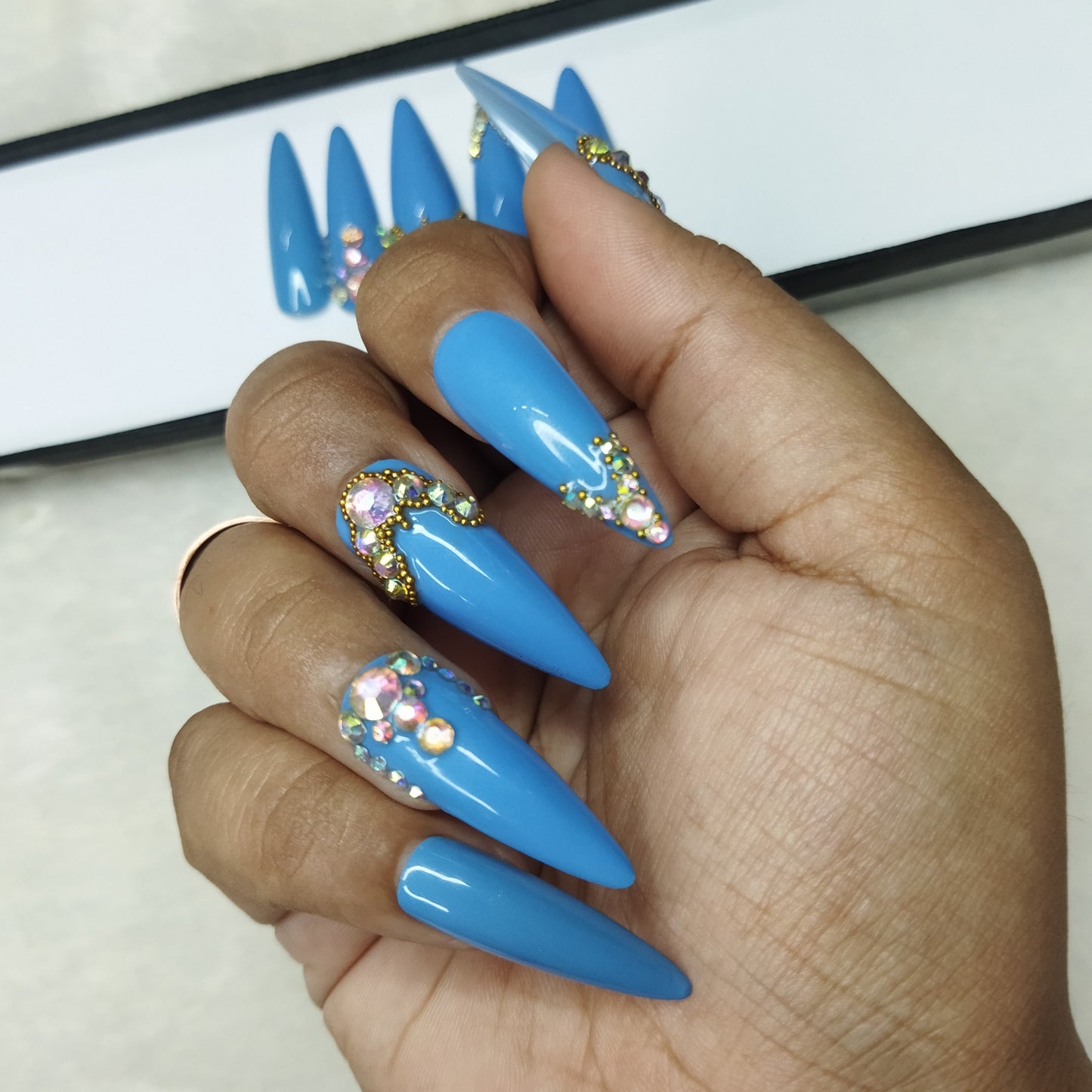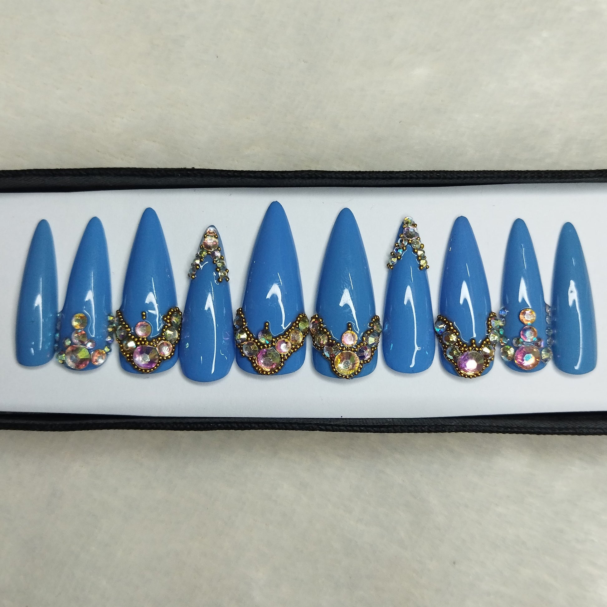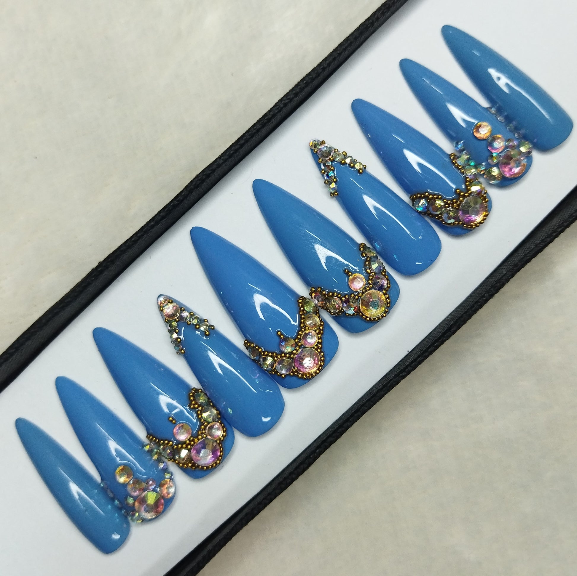 Lux Collection : Glossy Blue Studded Press on Nails Set // 565