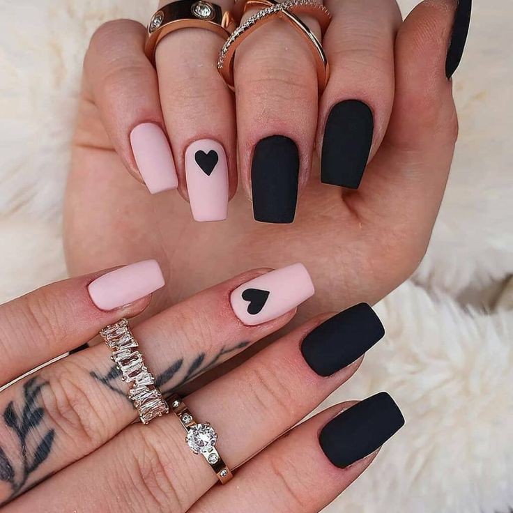 Matte Black Hearts Press on Fake Nails // tns173