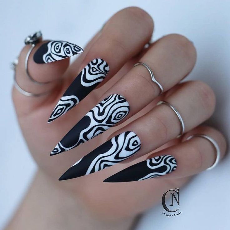 Matte Black Swirls Press on Fake Nails // tns436