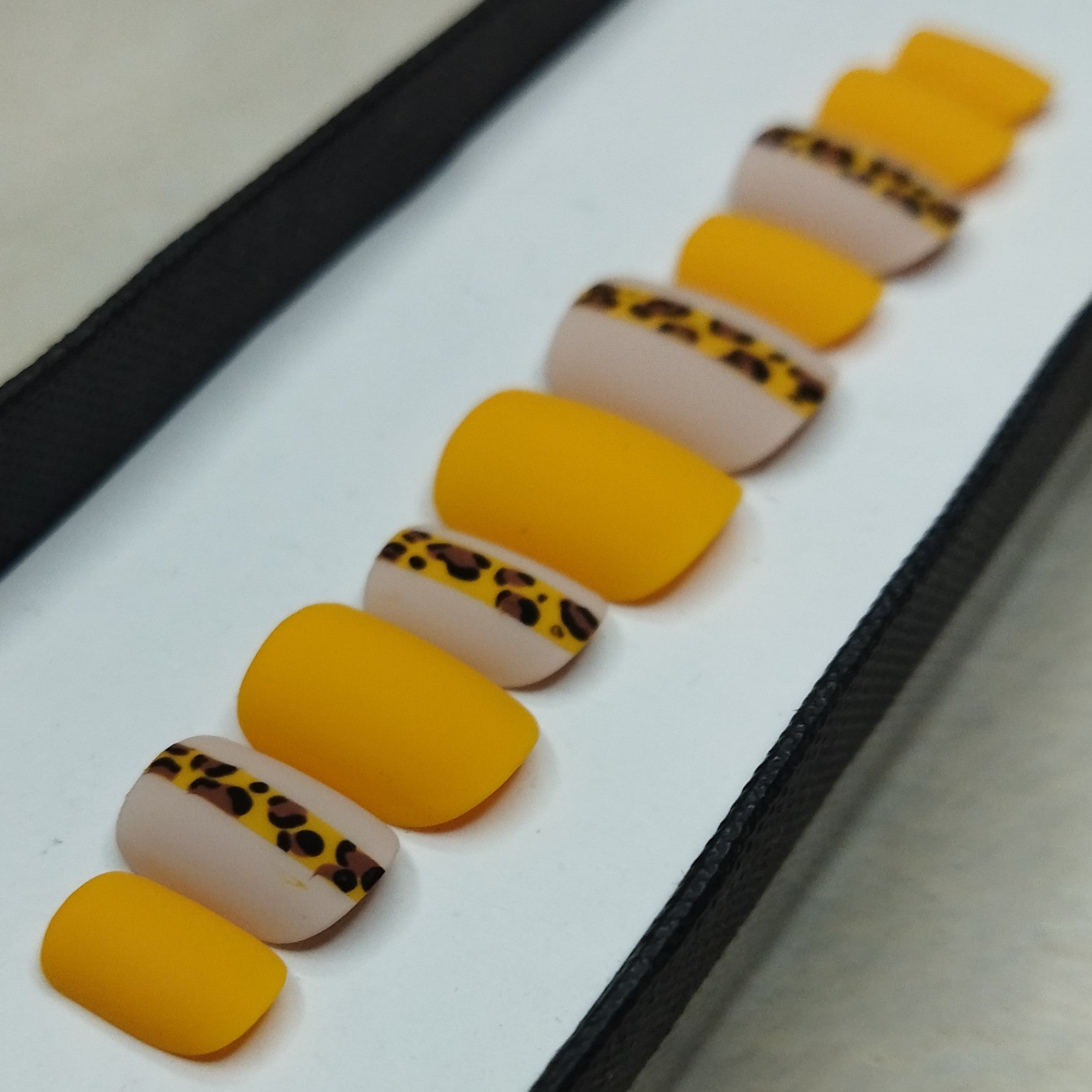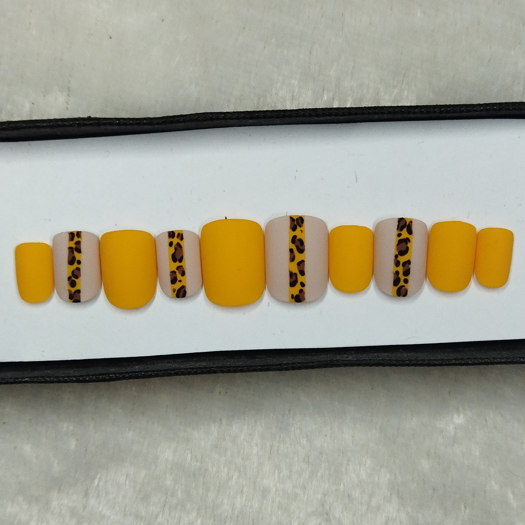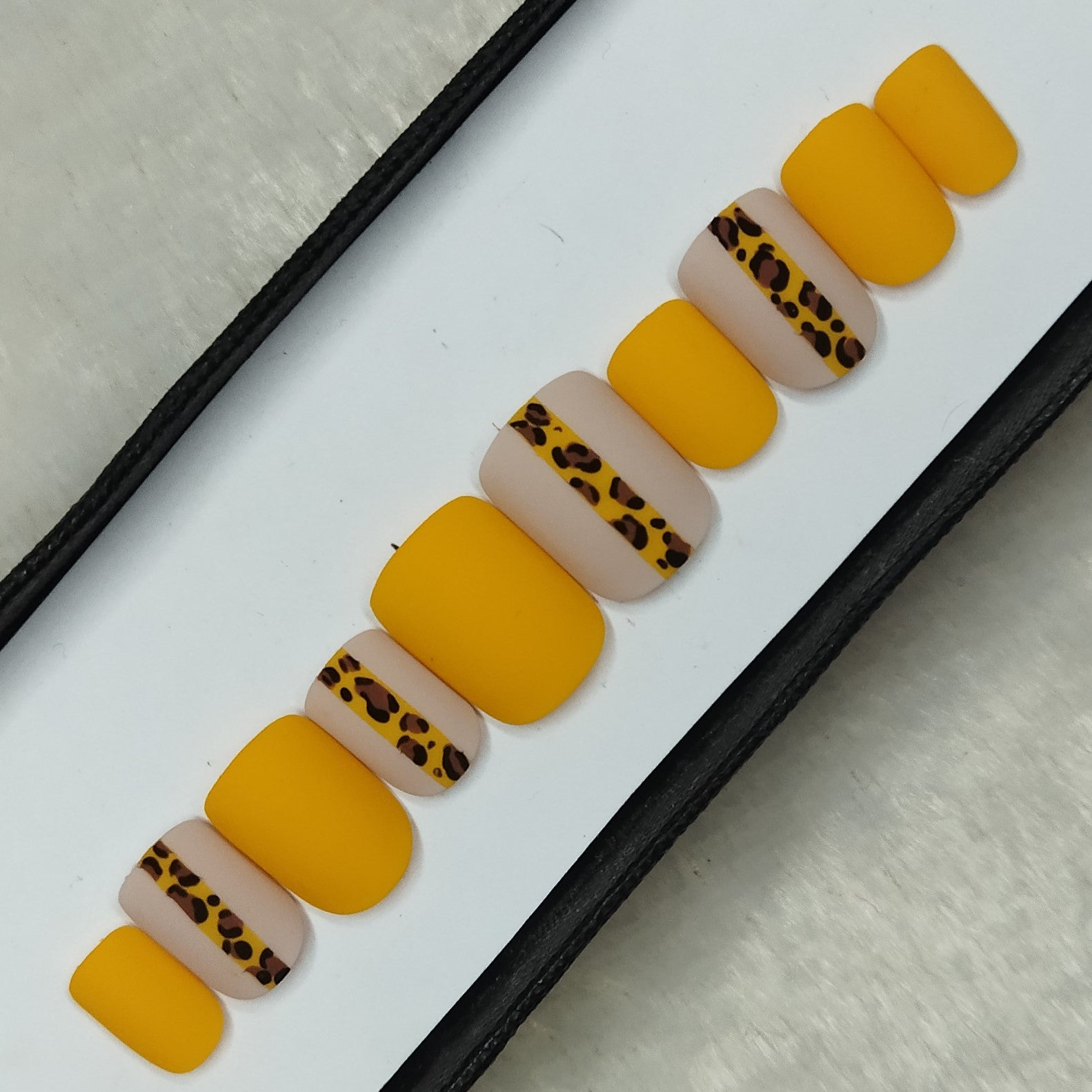 Matte Nude & Yellow Animal Print Press on Nails Set // 796