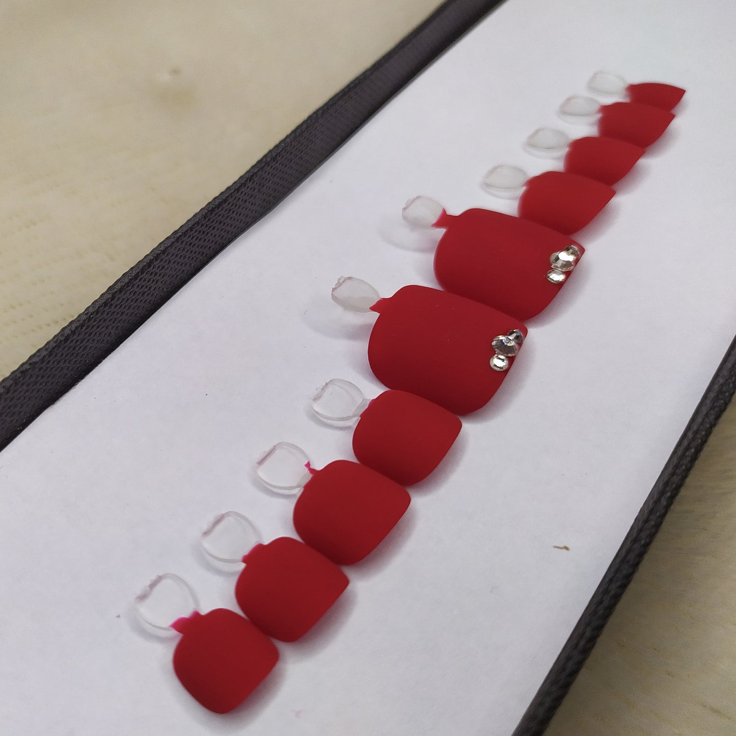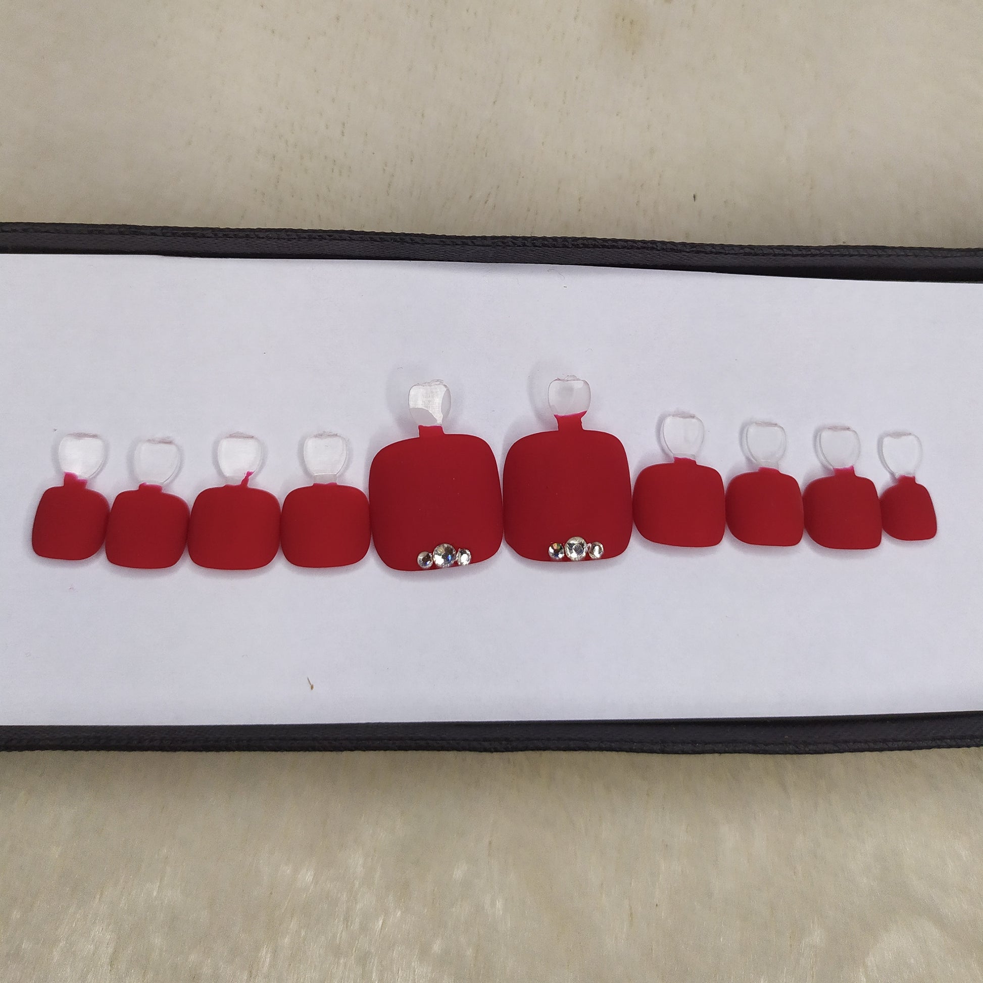 Matte Red Rhinestones Press on Nails Set // 532