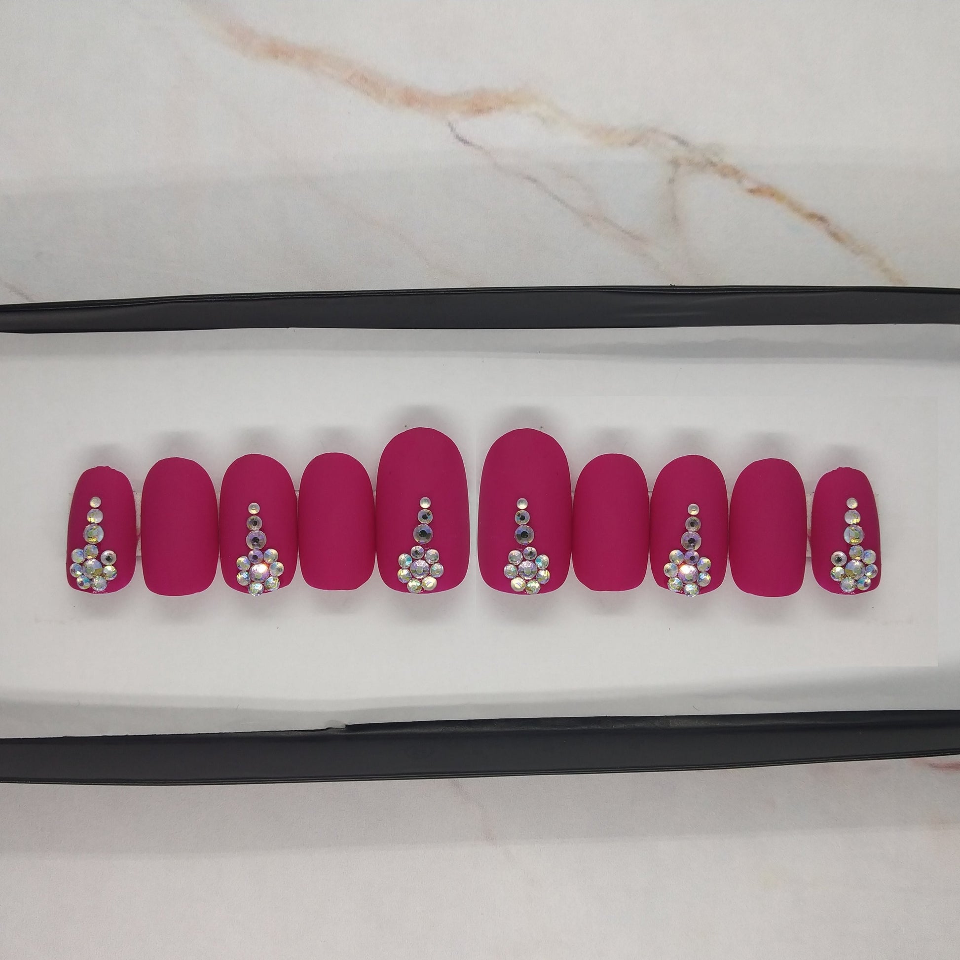 Matte Pink with Rhinestones Press on Nails // 147