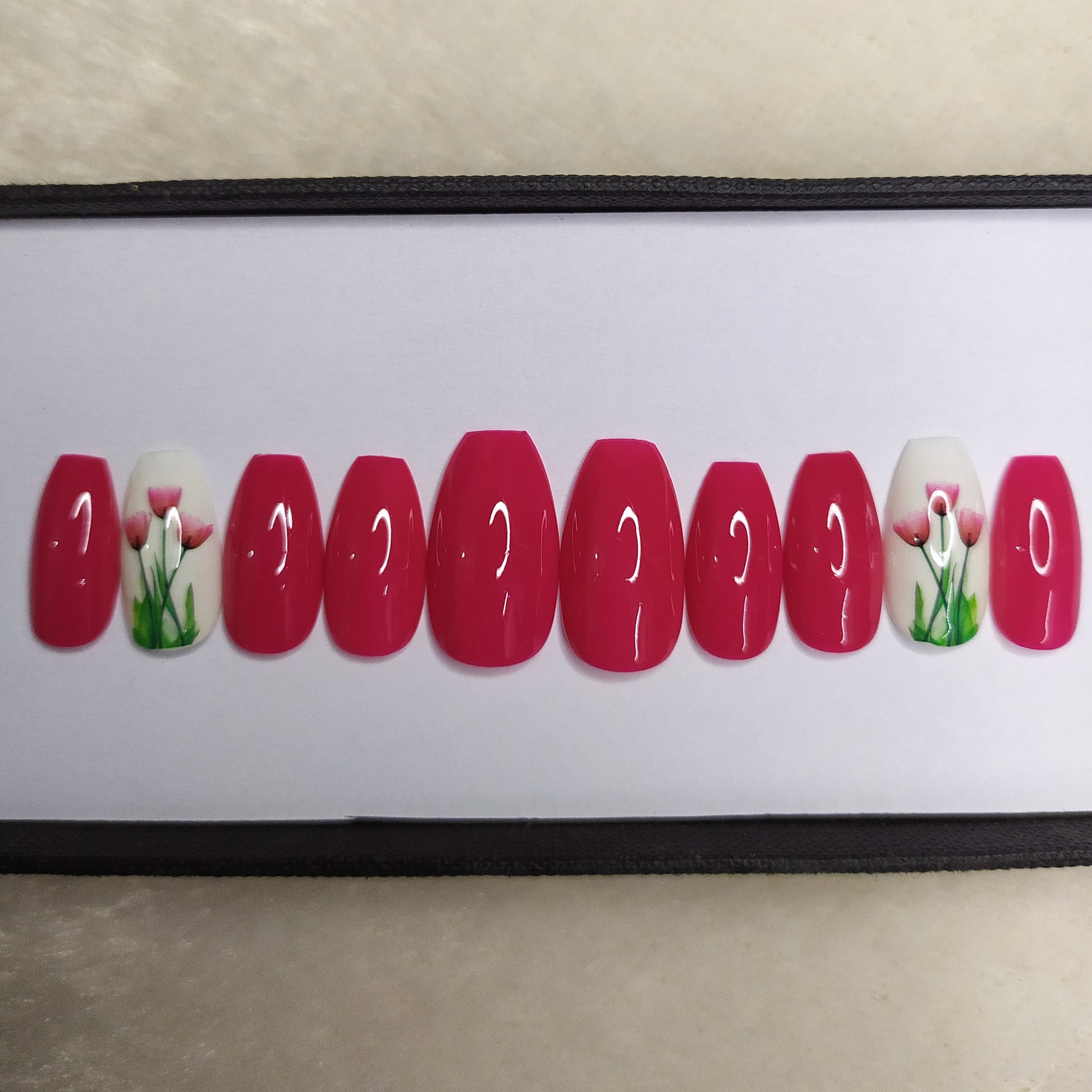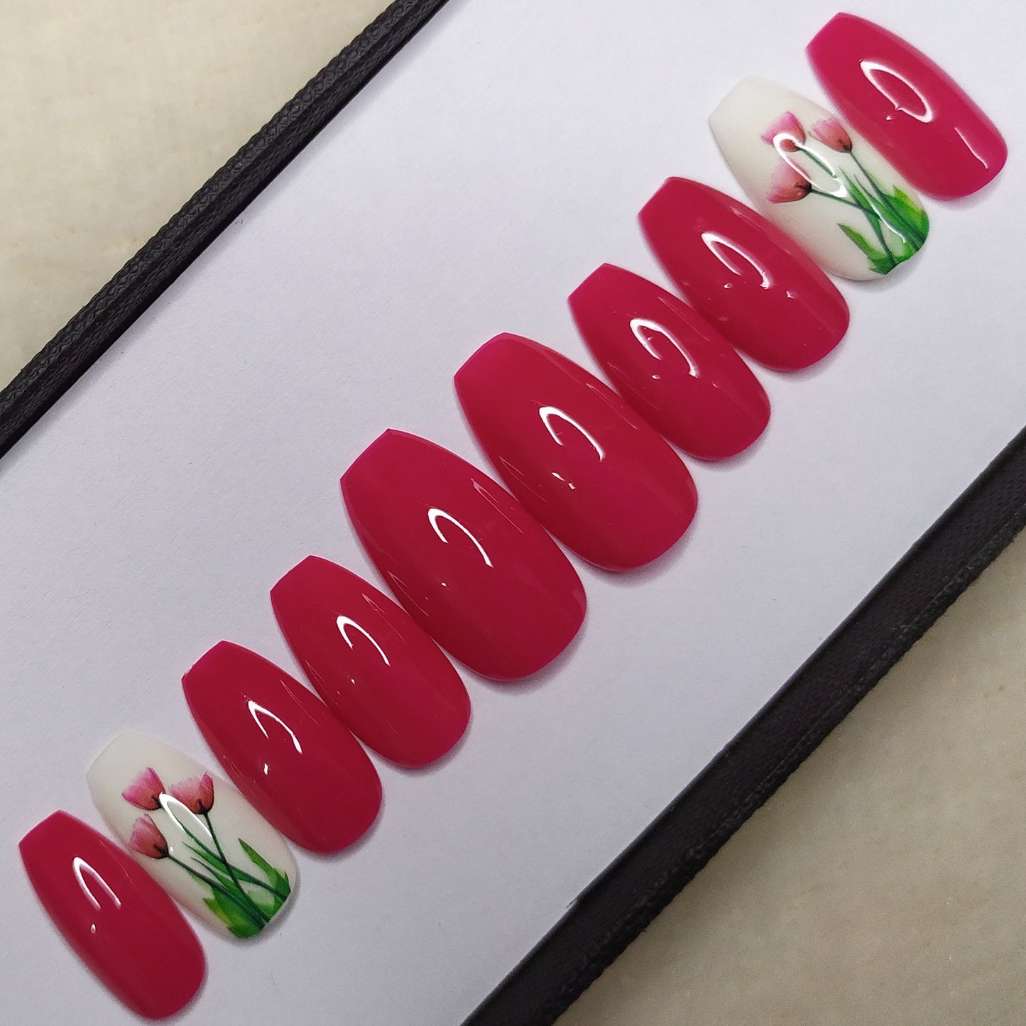 Glossy Pink Floral Accent Press on Nails Set // 158