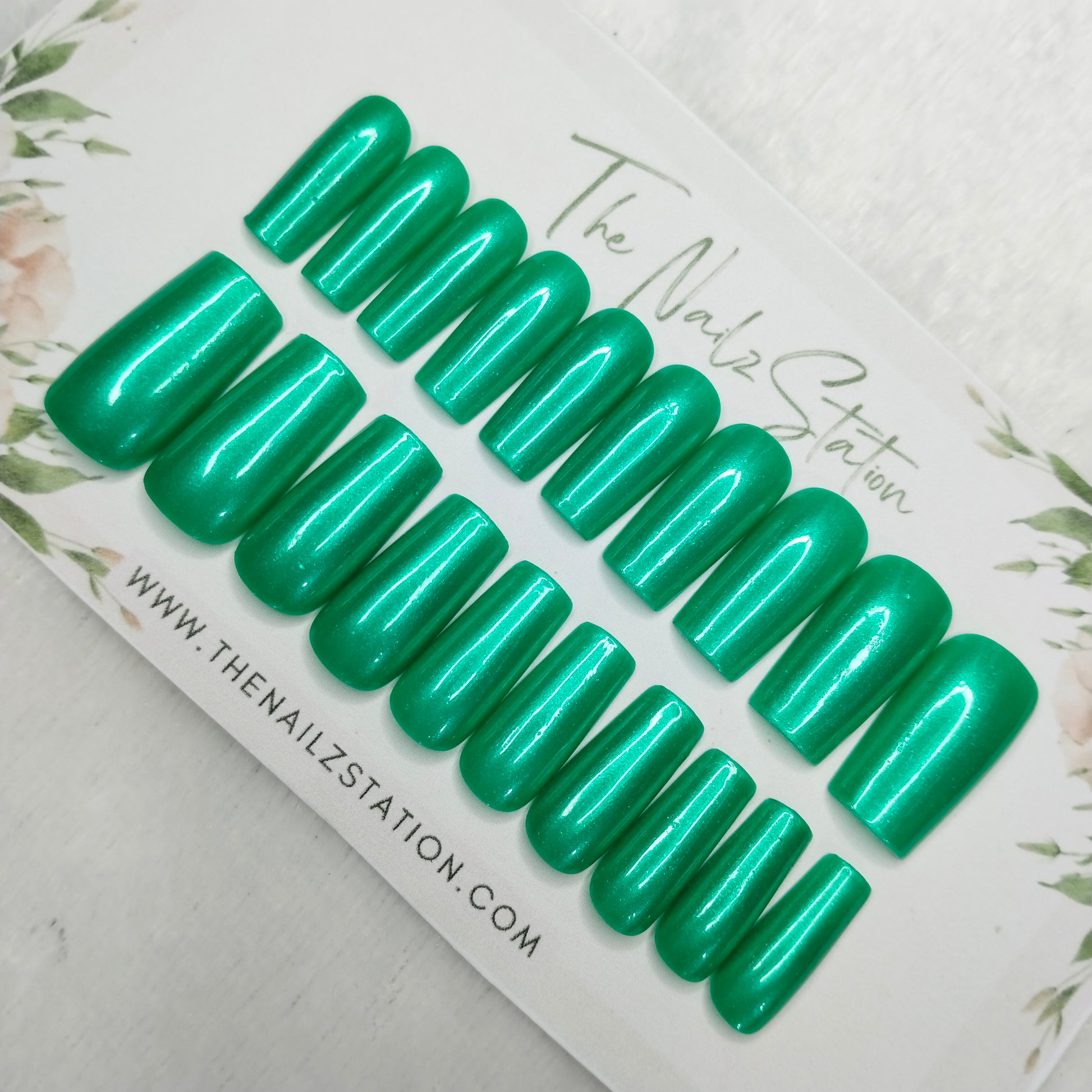 The NailzStation Sea Green Shimmer Chrome Press on Fake Artificial Nails Set with glue, filer, sticker application kit SB-SY-83