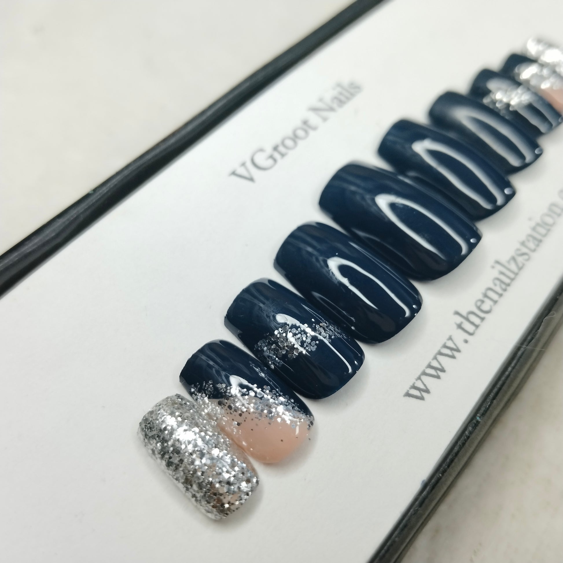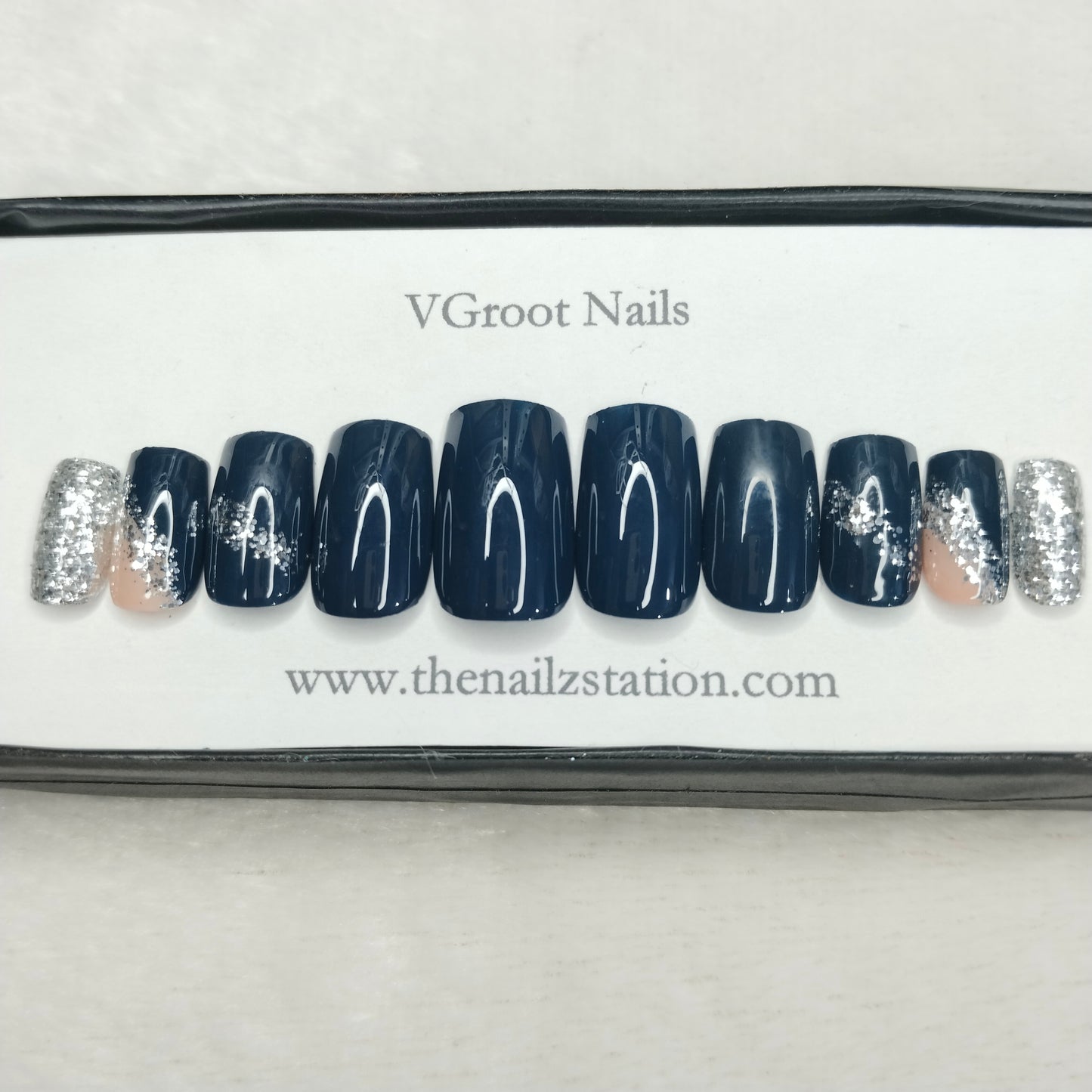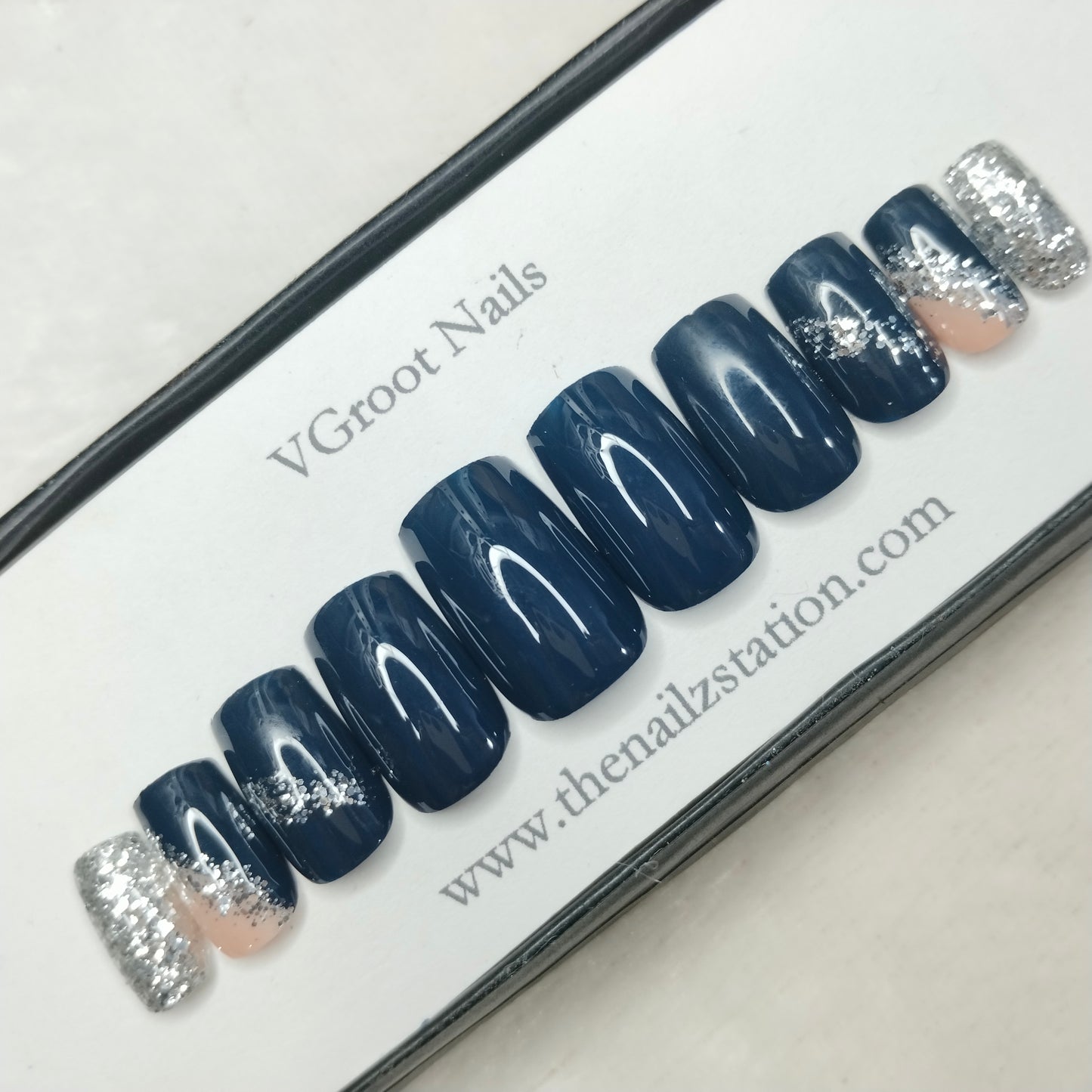 The NailzStation Glossy Blue Glitter Press on Fake Artificial Nails Set with glue, filer, sticker application kit // 1145