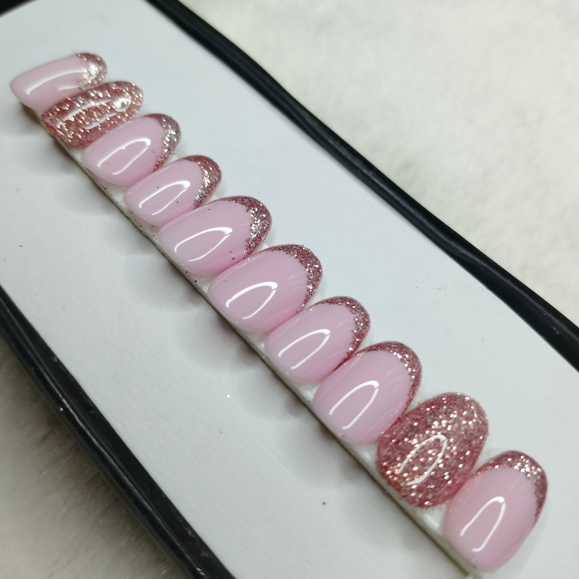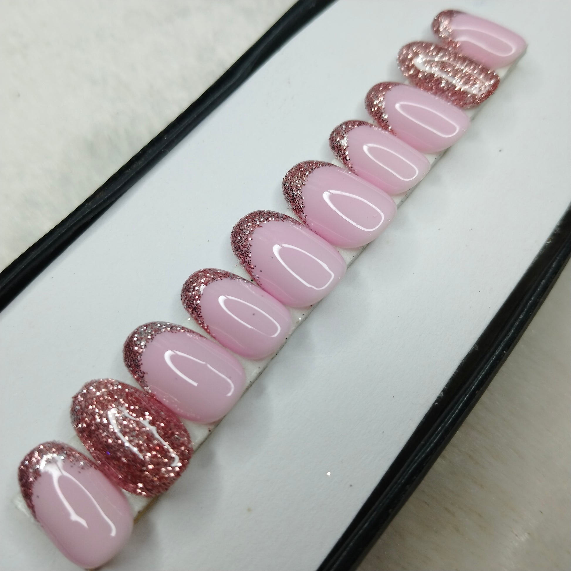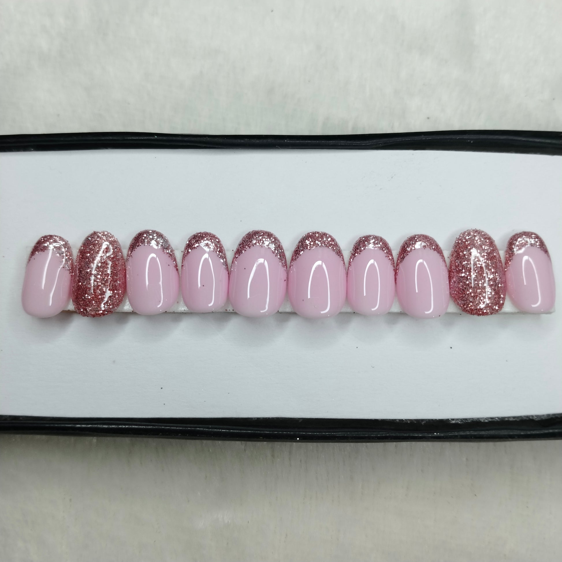 The NailzStation Glossy Light Pink Glitter French Press on Fake Artificial Nails Set with glue, filer, sticker application kit // 1415